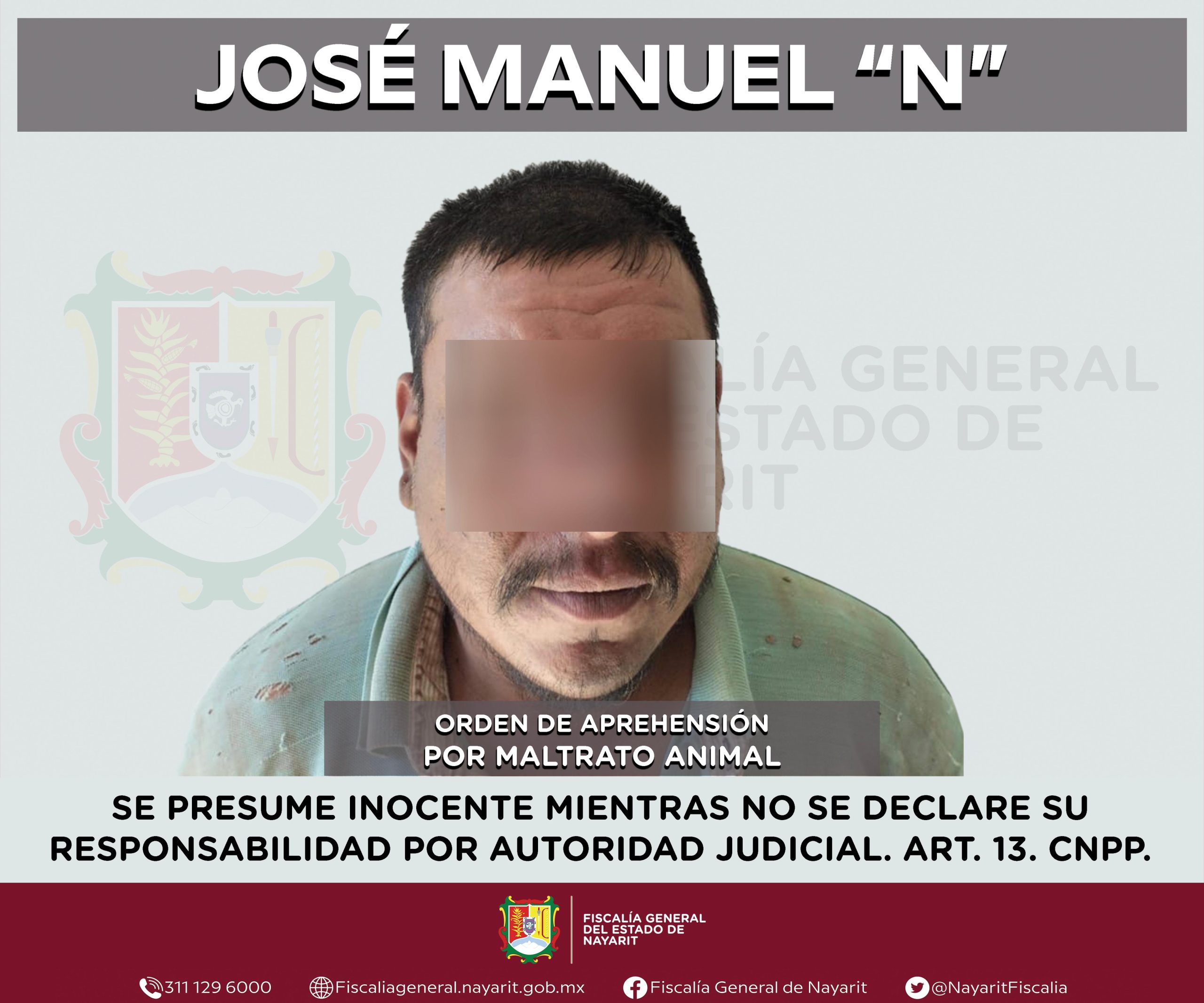 Elementos de la Agencia de Investigación Criminal de Nayarit ejecutaron una orden de aprehensión en el municipio de Ixtlán del Río contra José Manuel “N”, por su presunta participación en hechos que según apreciación de la ley encuadran el delito contra la la ecología y la fauna en su modalidad de maltrato animal, cometido en agravio de la sociedad.