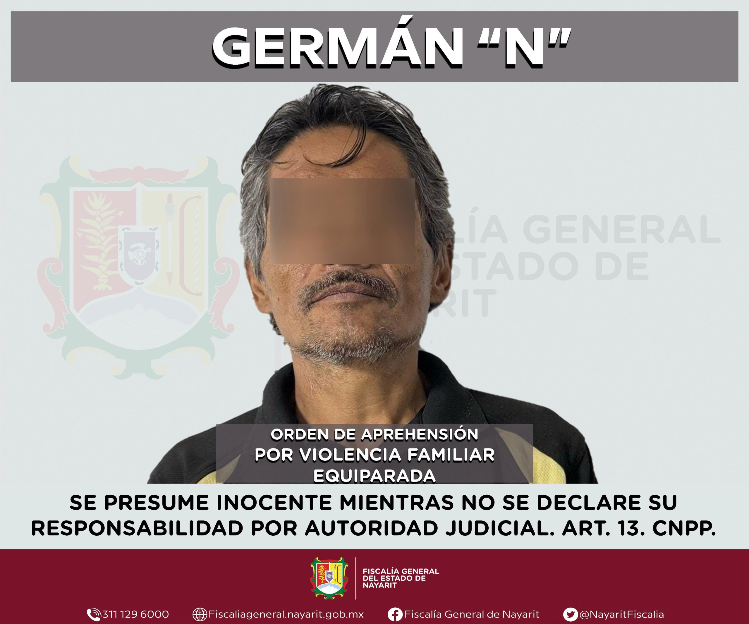 La Fiscalía General de Nayarit a través de la Agencia de Investigación Criminal ejecutó una orden de aprehensión en la ciudad de Tepic contra Germán “N”, por su probable participación en hechos que para la ley configuran el delito de violencia familiar equiparada, cometido en agravio de una persona de sexo femenino de identidad reservada.