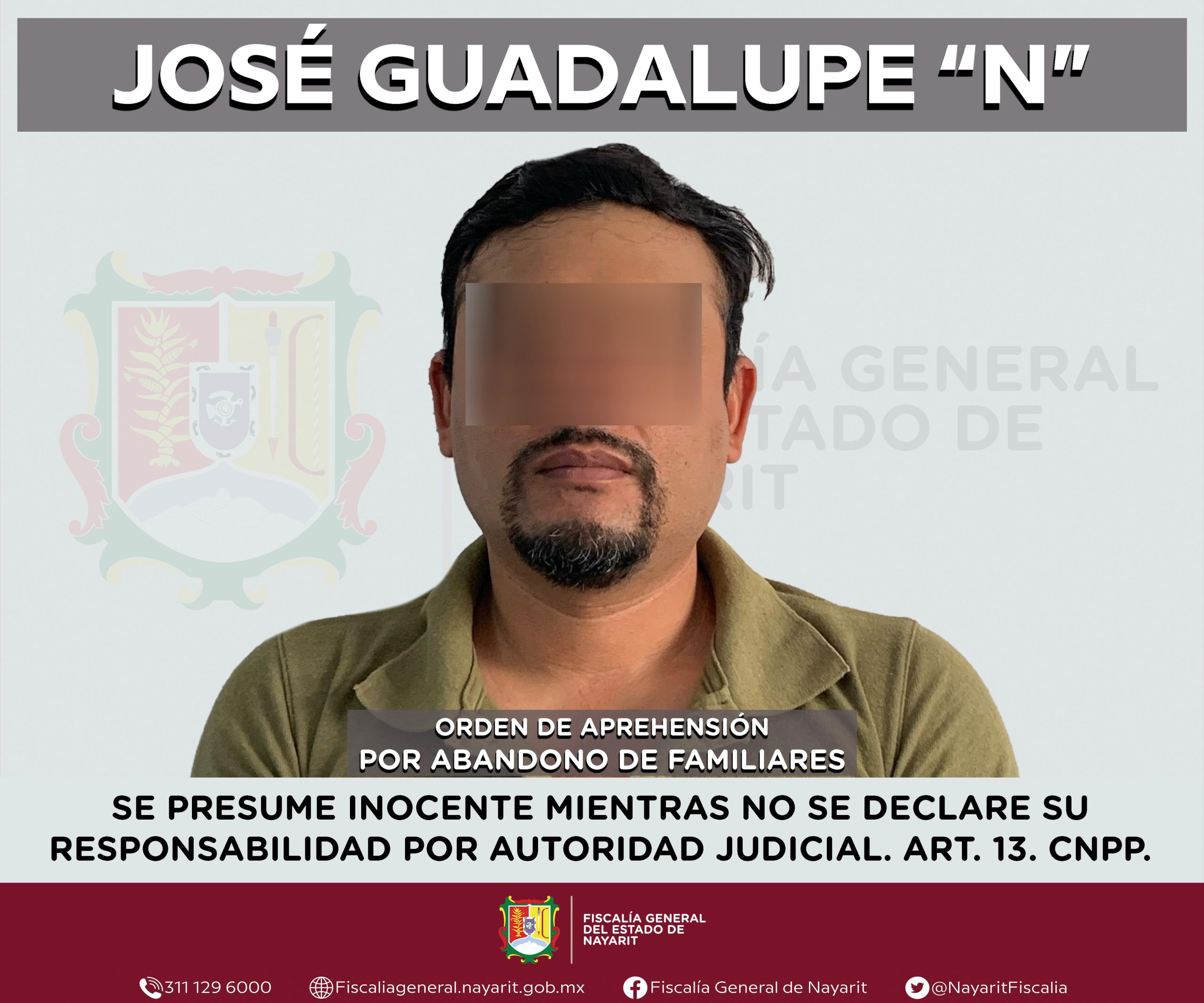La Fiscalía General de Nayarit a través de la Agencia de Investigación Criminal ejecutó una orden de aprehensión en la ciudad de Tepic contra José Guadalupe “N”, por su probable participación en hechos que para la ley configuran el delito de abandono de familiares, cometido en agravio de un niño de identidad reservada.