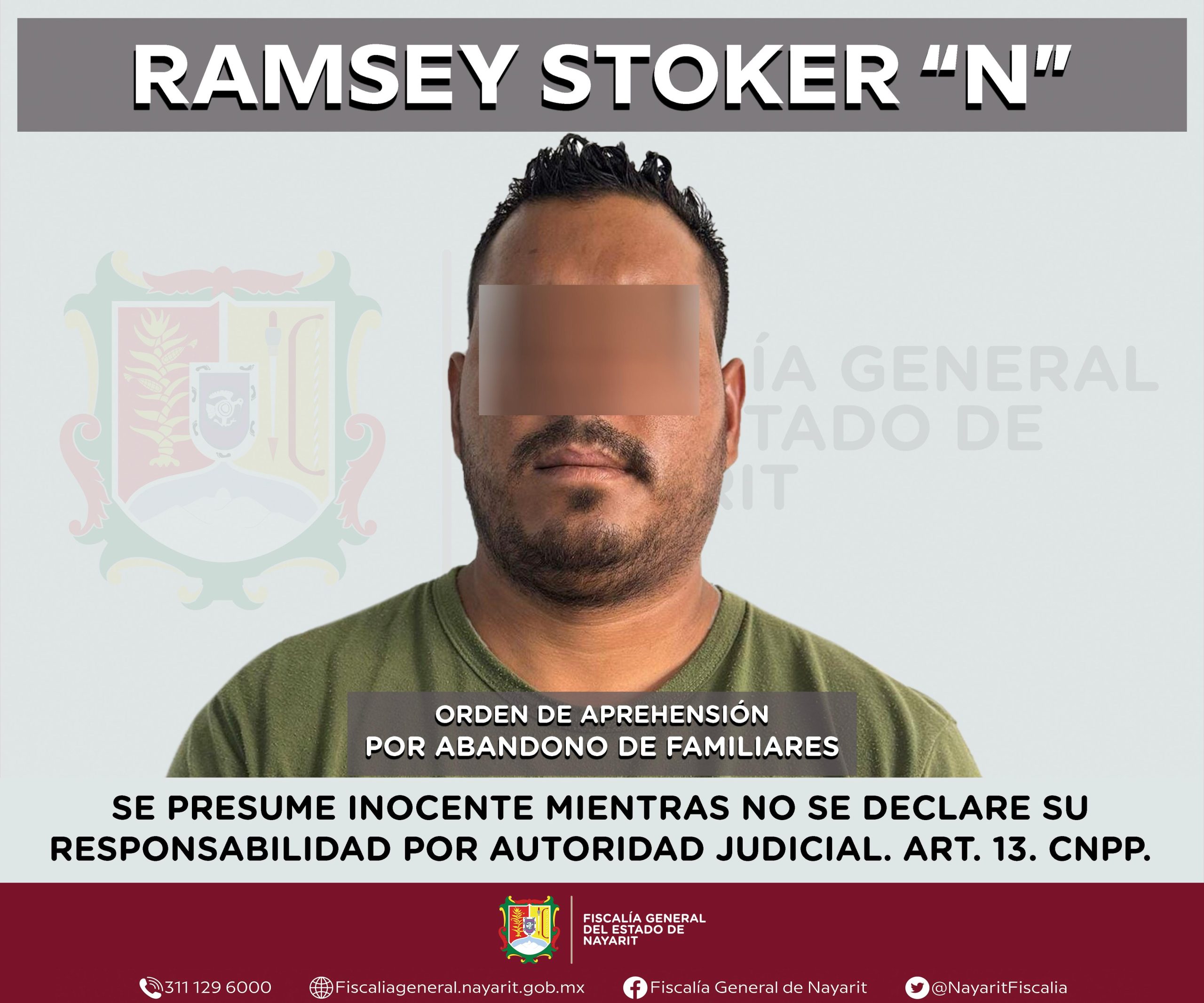Elementos de la Agencia de Investigación Criminal de Nayarit ejecutaron una orden de aprehensión en la capital nayarita contra Ramsey Stoker “N”, por su presunta participación en hechos que según apreciación de la ley encuadran el delito de abandono de familiares, cometido en contra de dos niños de identidades reservadas.