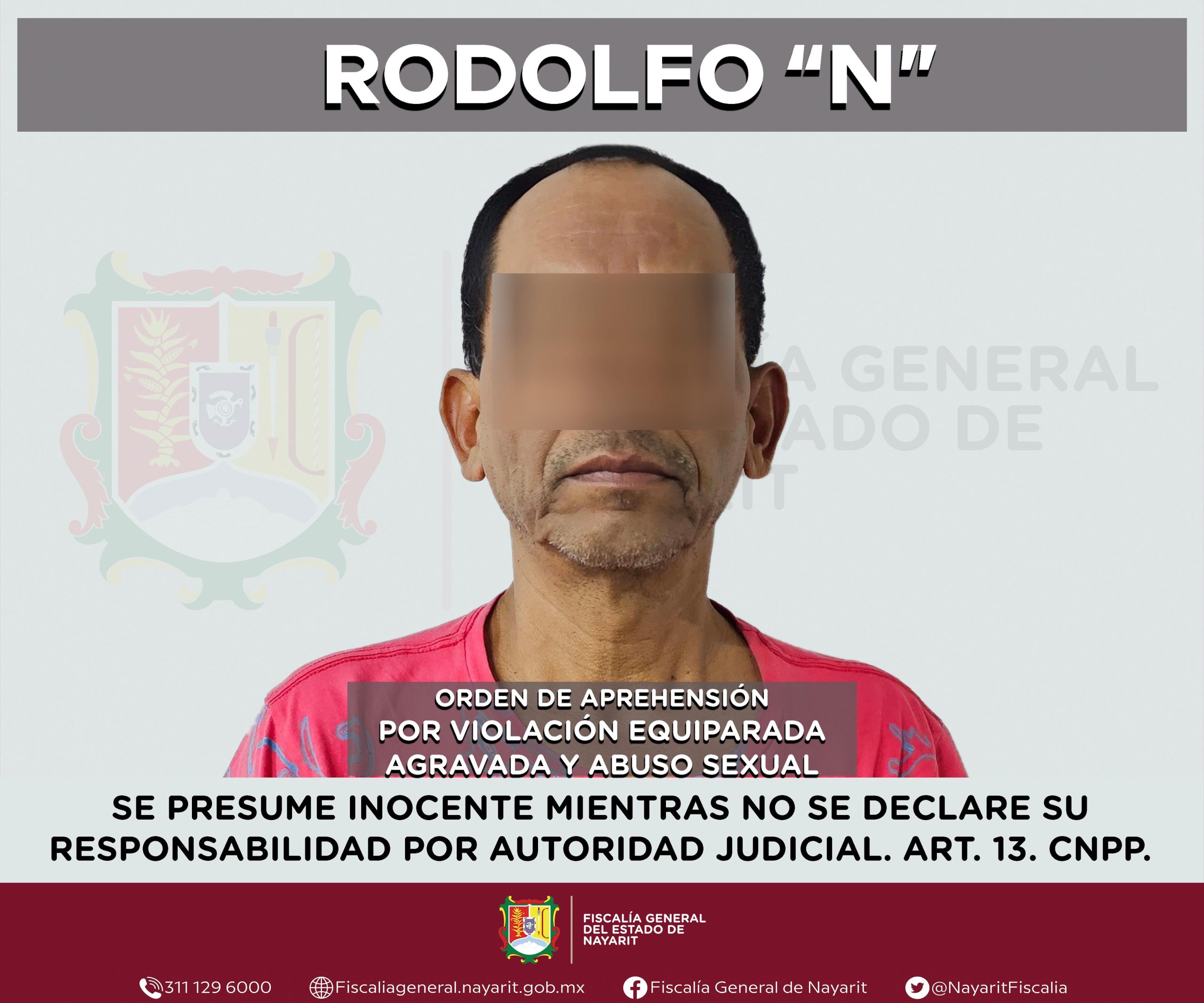 Elementos de la Agencia de Investigación Criminal de Nayarit ejecutaron una orden de aprehensión en la ciudad de Tepic contra Rodolfo “N”, por su presunta participación en hechos que según apreciación de la ley encuadran los delitos de violación equiparada agravada y abuso sexual, en contra de una adolescente de identidad reservada.