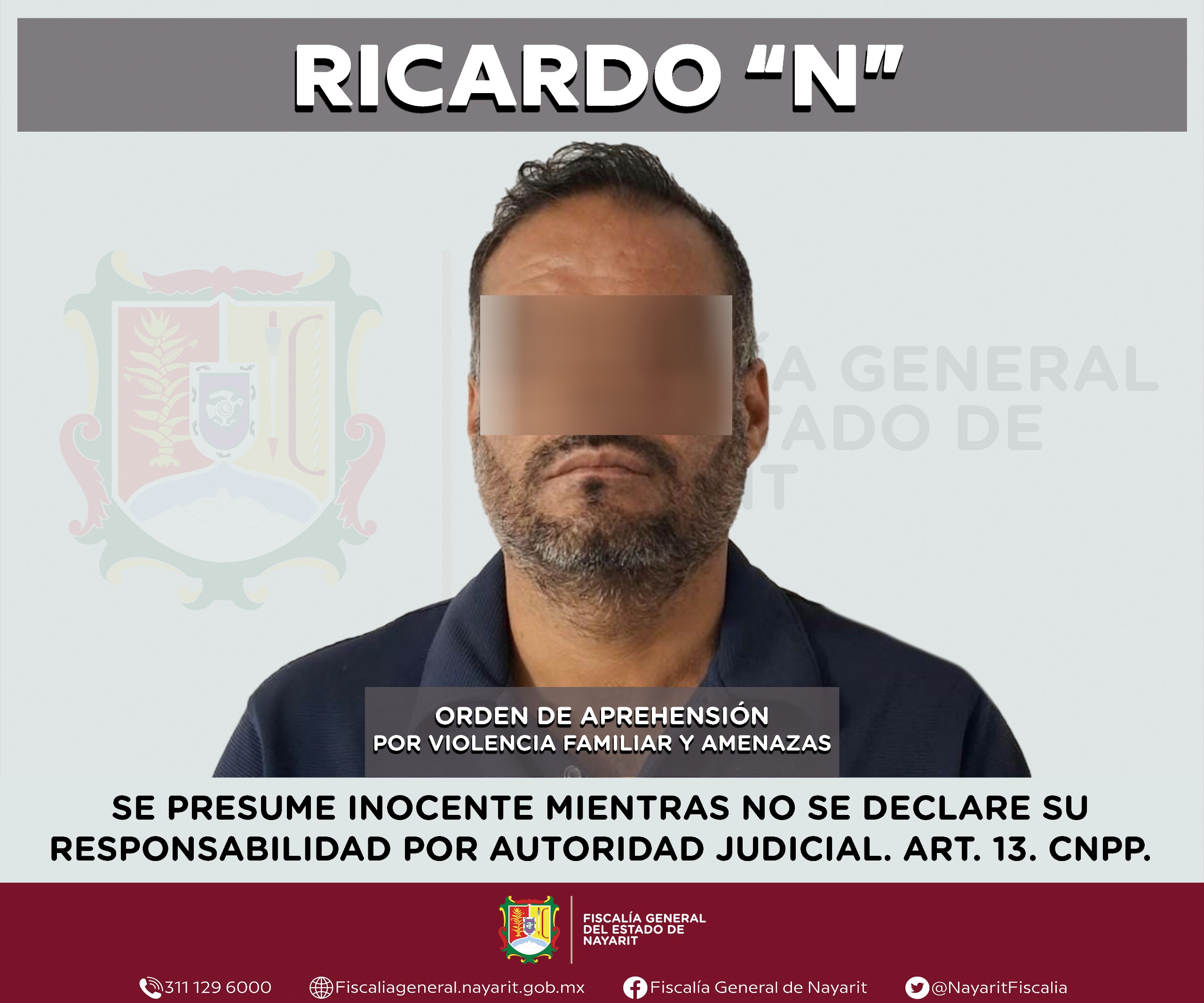 Elementos de la Agencia de Investigación Criminal de Nayarit cumplimentaron una orden de aprehensión en la capital nayarita contra Ricardo “N”, por su probable participación en hechos que la ley tipifica como delitos de violencia familiar y amenazas, cometidos en agravio de una persona de sexo femenino, cuya identidad se mantiene bajo reserva con el propósito de salvaguardar su privacidad e integridad.