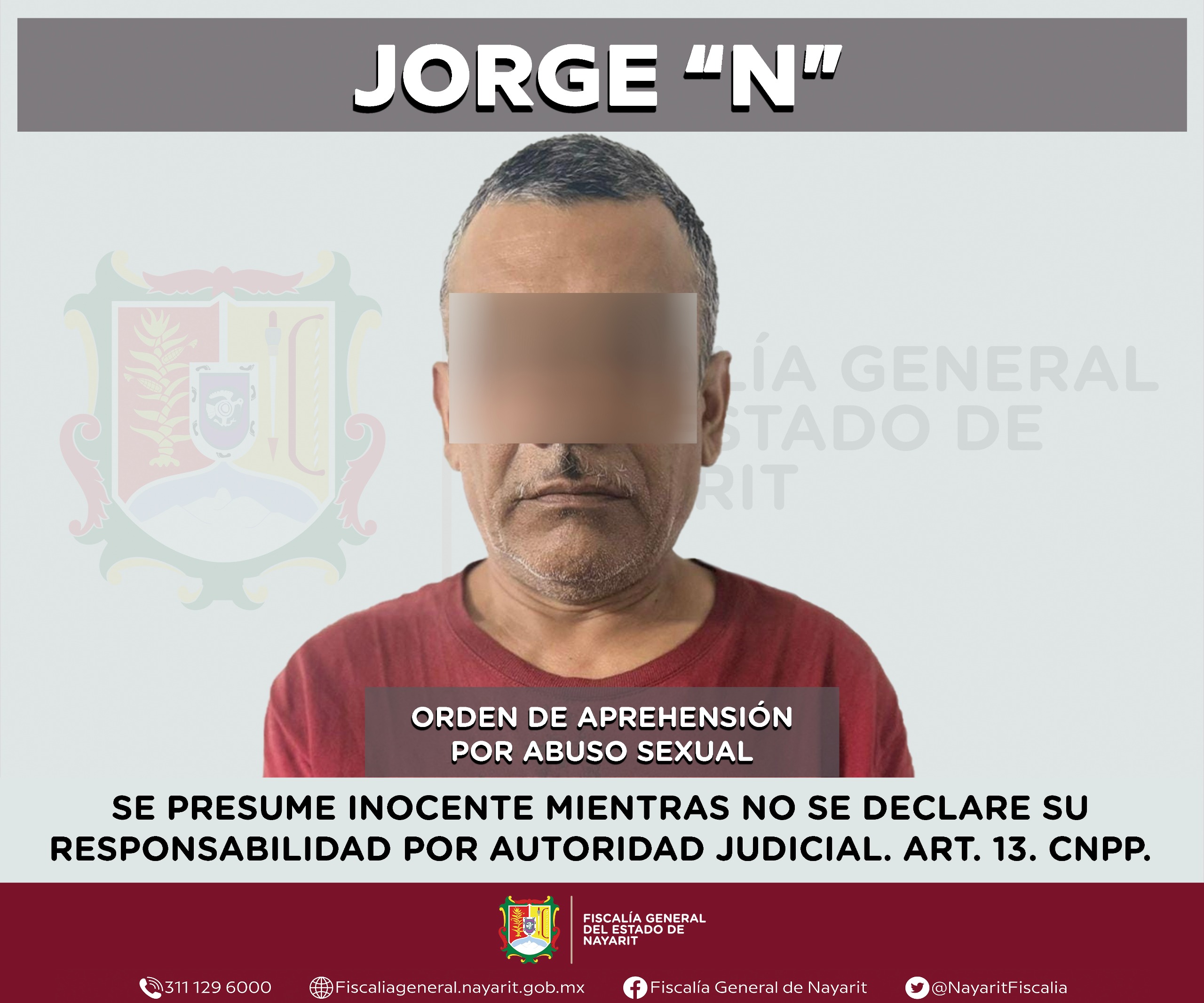19 Agosto 2025.- Elementos de la Agencia de Investigación Criminal cumplimentaron una orden de aprehensión en la capital nayarita contra Jorge “N”, por su probable participación en hechos que la legislación vigente tipifica como delito de abuso sexual, cometido en agravio de una adolescente, cuya identidad se reserva en atención a su derecho a la privacidad e integridad.