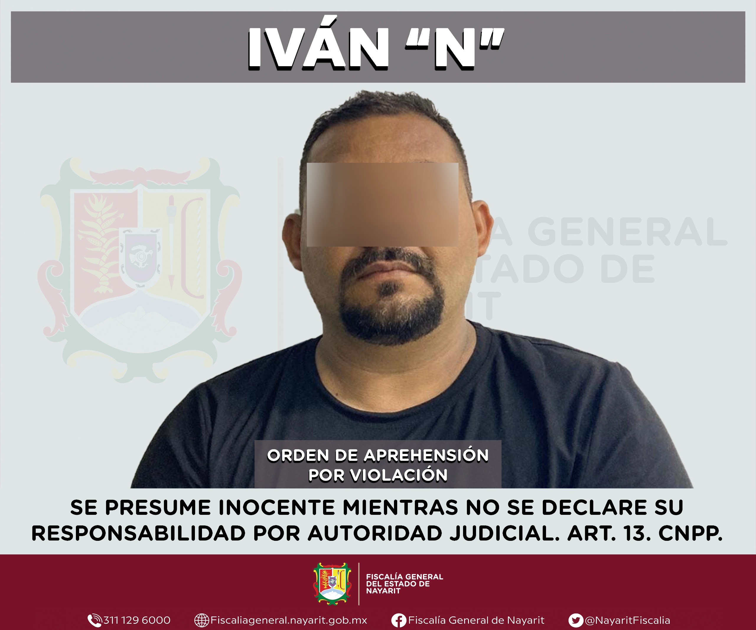 Elementos de la Agencia de Investigación Criminal cumplimentaron una orden de aprehensión en la capital nayarita contra Iván “N”, por su probable participación en hechos que la legislación vigente tipifica como delito de violación, cometido en agravio de una persona de sexo femenino cuya identidad se mantiene bajo reserva en atención a su derecho a la privacidad e integridad..