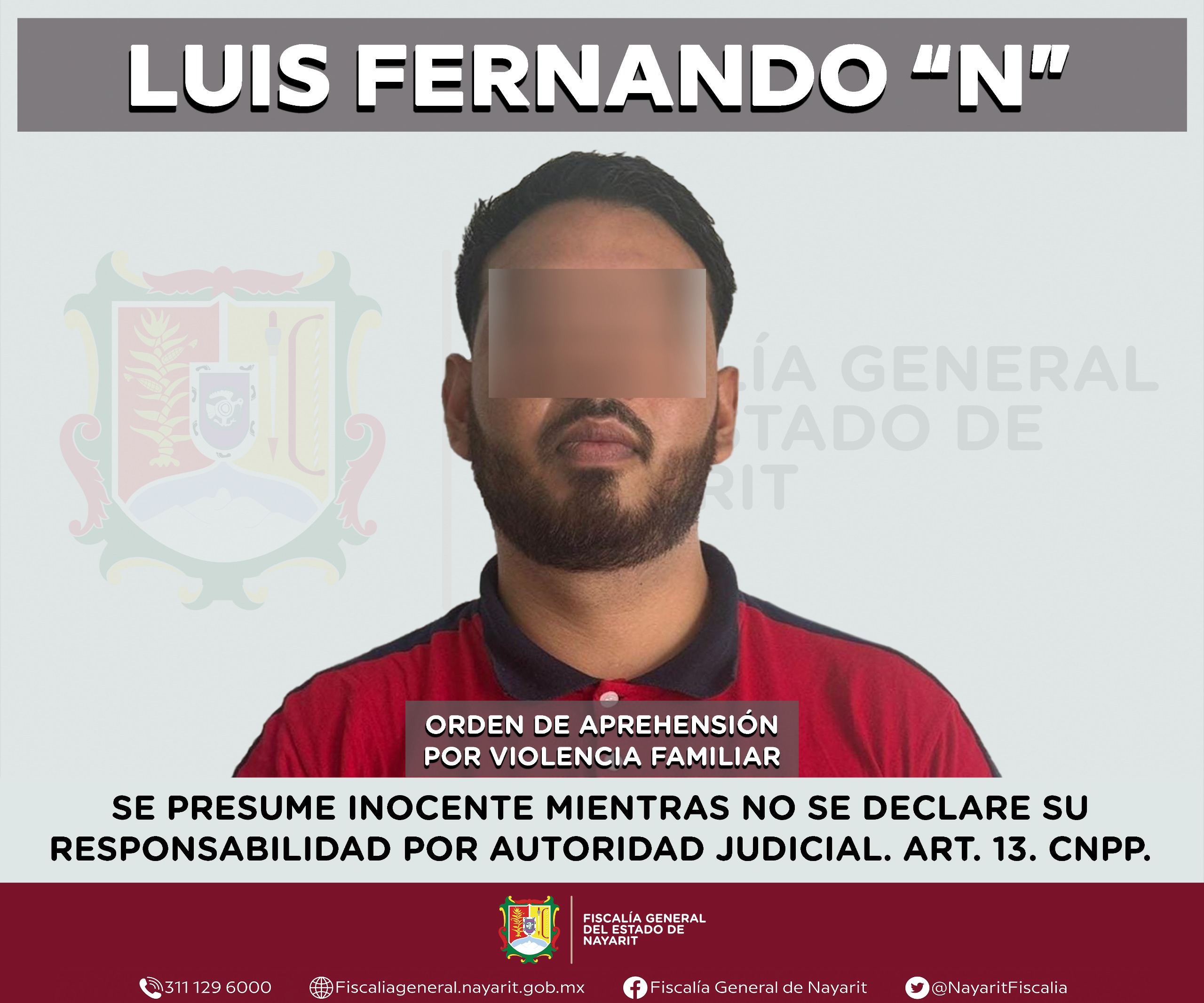 Elementos de la Agencia de Investigación Criminal cumplimentaron una orden de aprehensión en la capital nayarita contra Luis Fernando “N”, por su probable participación en hechos que la legislación vigente tipifica como delito de violencia familiar, en agravio de una persona de sexo femenino cuya identidad se mantiene bajo reserva en atención a su derecho a la privacidad e integridad.