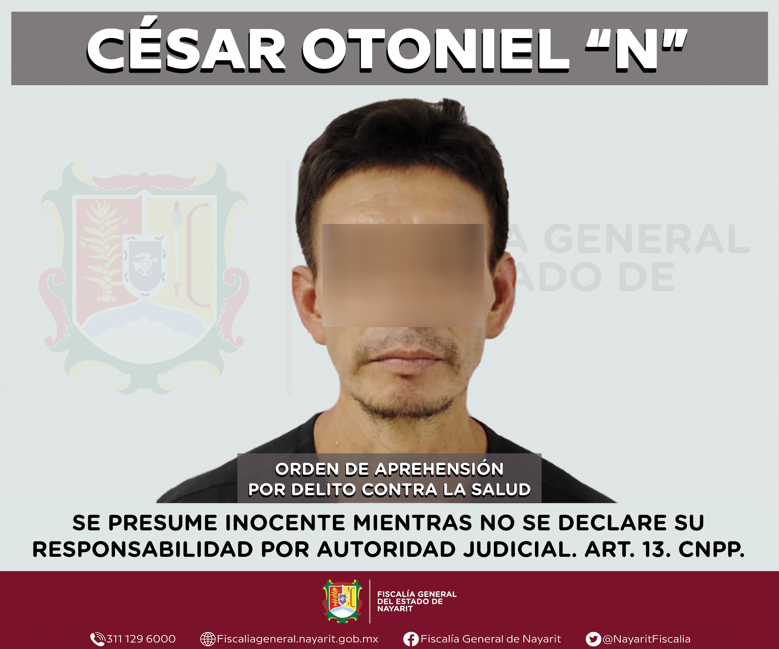 La Fiscalía General del estado de Nayarit informa que elementos de la Agencia de Investigación Criminal ejecutaron una orden de aprehensión en la ciudad de Tepic contra César Otoniel “N”, por su probable participación en hechos que la ley tipifica como delito contra la salud en su modalidad de narcomenudeo -en su hipótesis de posesión de estupefacientes-, cometido en agravio de la sociedad.