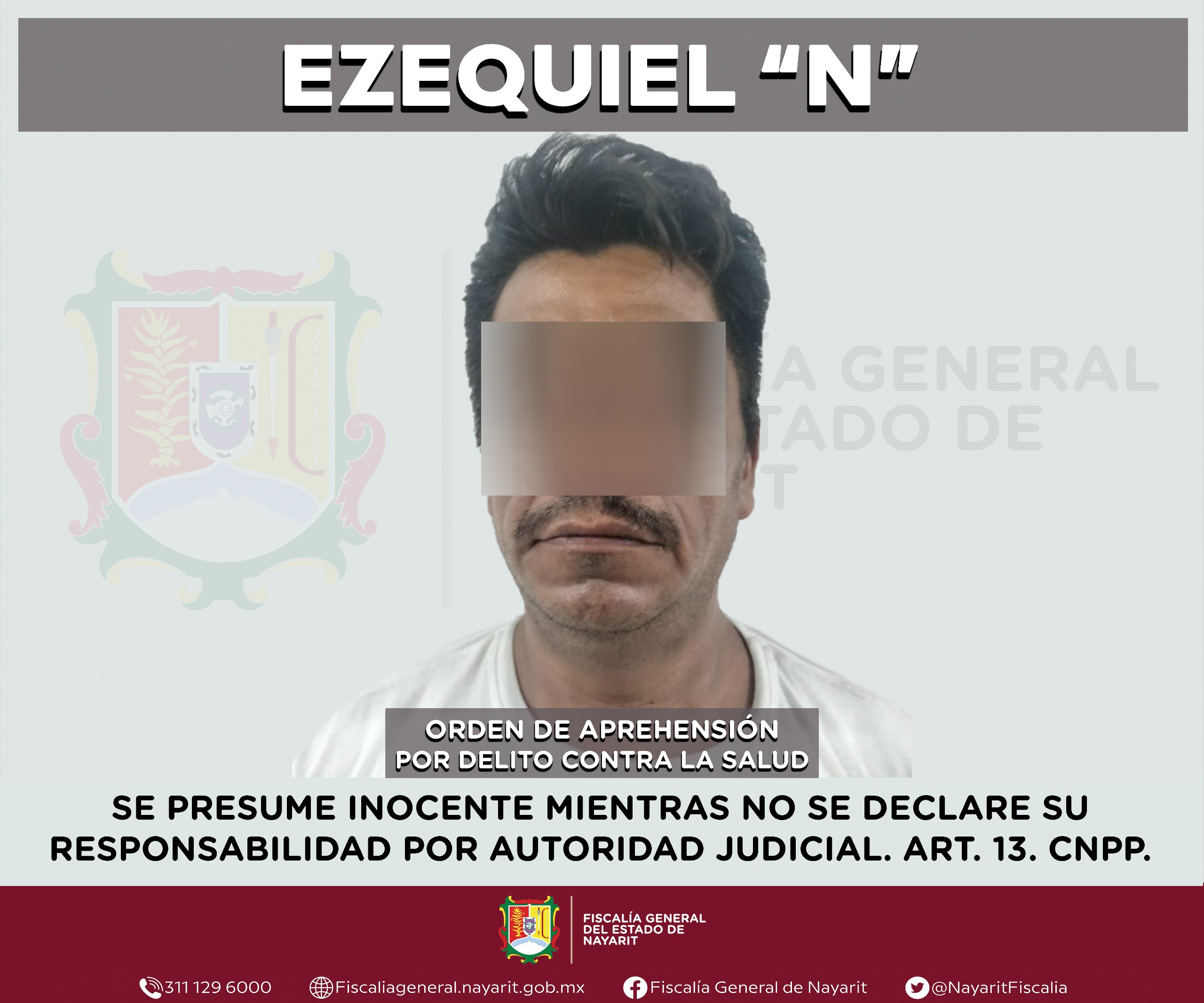 Elementos de la Agencia de Investigación Criminal cumplimentaron una orden de aprehensión en la ciudad de Tepic contra Ezequiel “N”, por su probable participación en hechos que la legislación vigente tipifica como delito contra la salud en su modalidad de narcomenudeo -en su hipótesis de posesión de psicotrópicos-, cometido contra la sociedad.