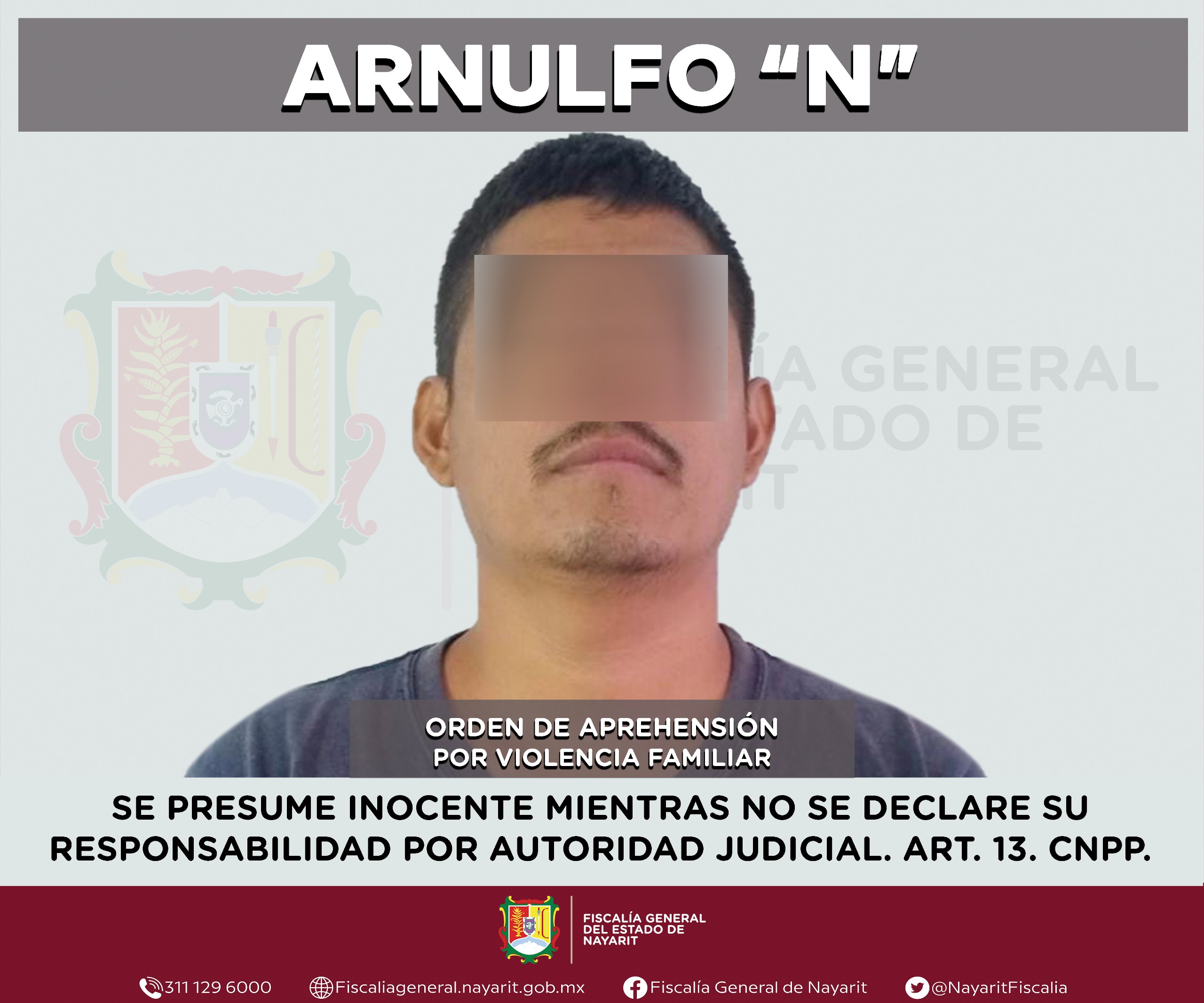 Elementos de la Agencia de Investigación Criminal de Nayarit cumplimentaron una orden de aprehensión en la ciudad de Tepic contra Arnulfo “N”, por su probable participación en hechos que la legislación vigente tipifica como delito de violencia familiar, cometido en agravio de una persona de sexo femenino de quien se reserva la identidad respetando su derecho a la privacidad e integridad.