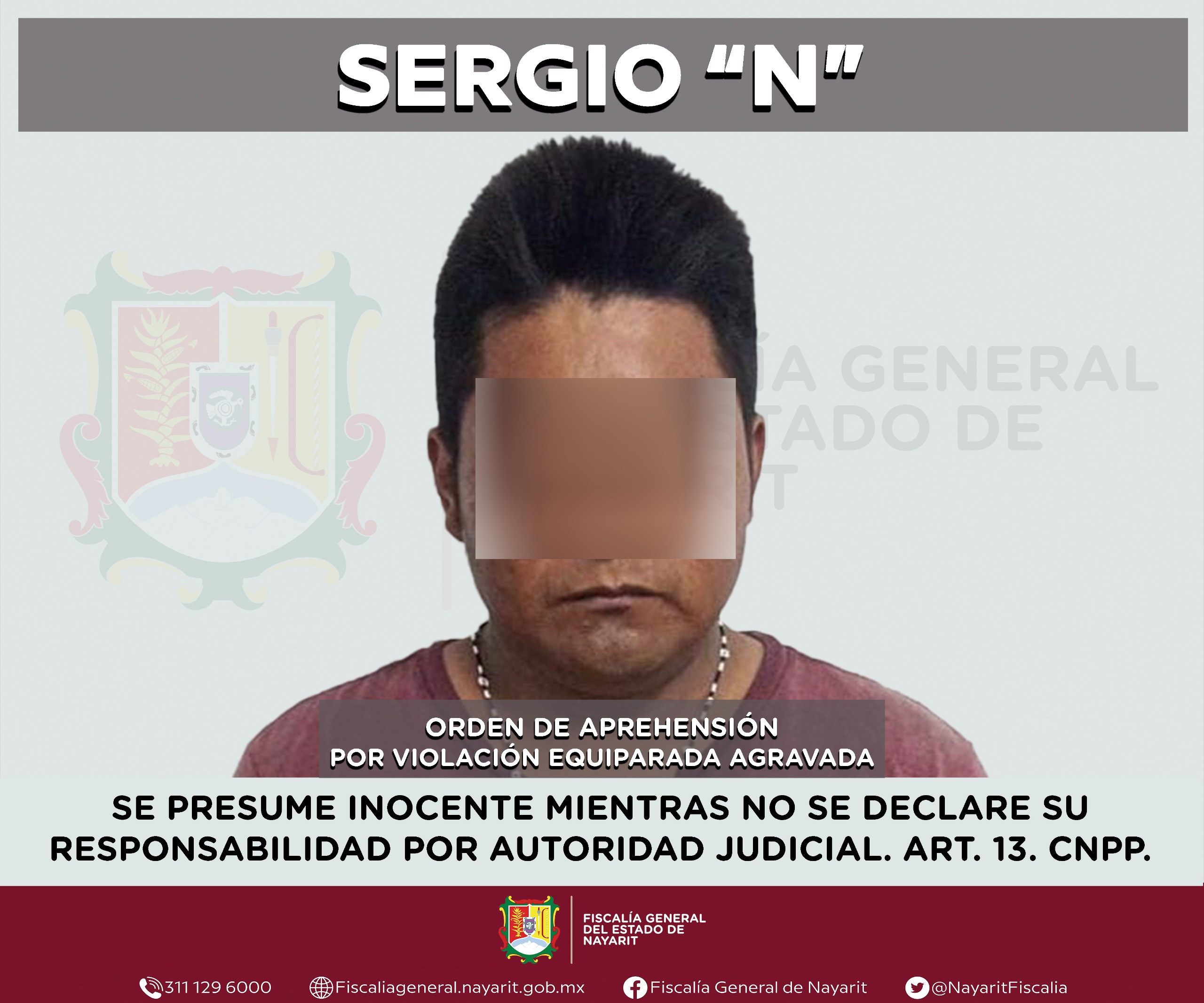 Elementos de la Agencia de Investigación Criminal de Nayarit ejecutaron una orden de aprehensión en el municipio de San Blas contra Sergio “N”, por su presunta participación en hechos que según apreciación de la ley encuadran el delito de violación equiparada agravada, cometido en contra de una adolescente cuya identidad se reserva en atención a su derecho a la privacidad e integridad.