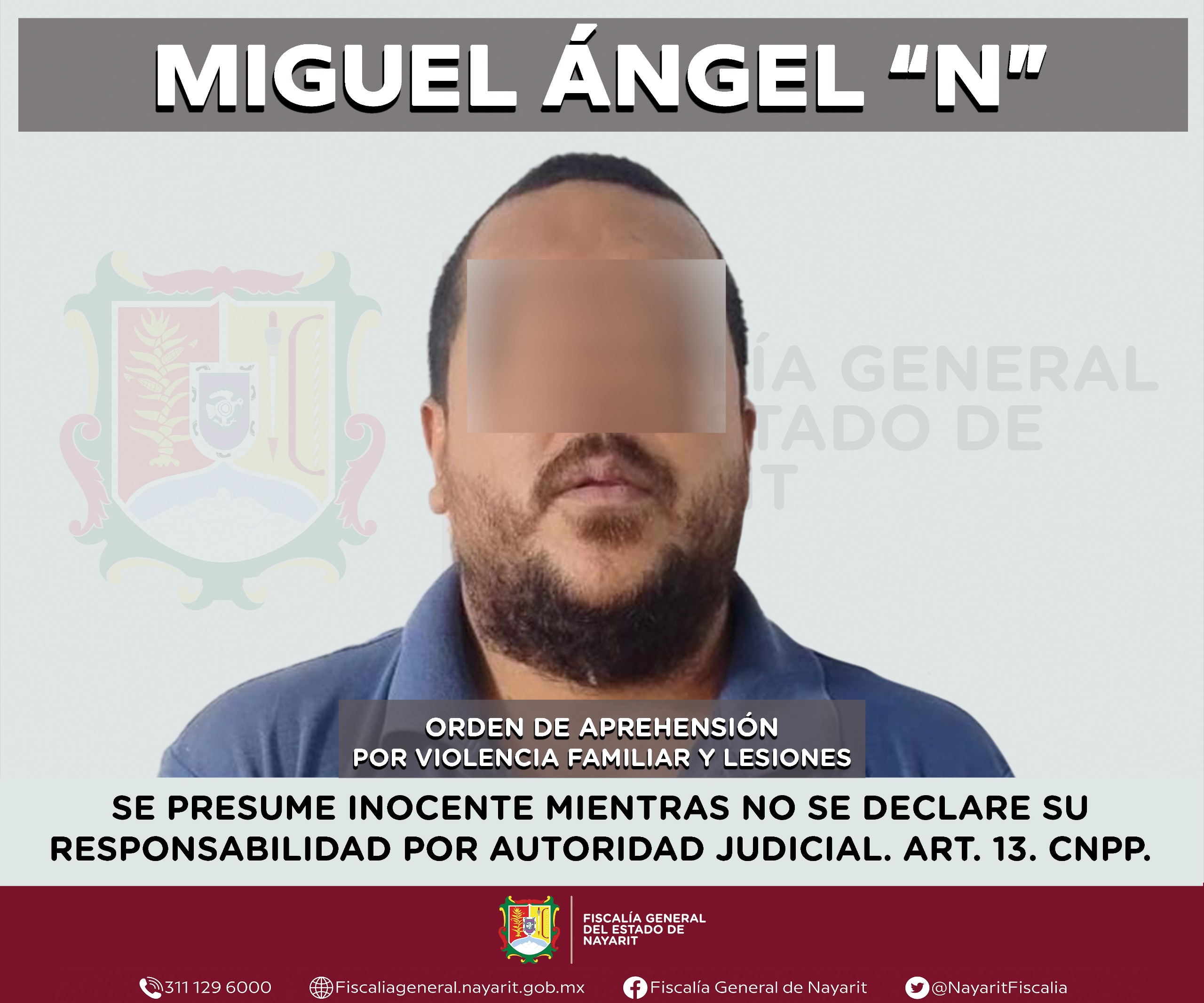Elementos de la Agencia de Investigación Criminal de Nayarit ejecutaron una orden de aprehensión en la capital nayarita contra Miguel Ángel “N”, por su presunta participación en hechos que según apreciación de la ley configuran los delitos de violencia familiar y lesiones, cometidos contra una persona de sexo femenino cuya identidad es de carácter reservado para proteger su derecho a la privacidad e integridad.