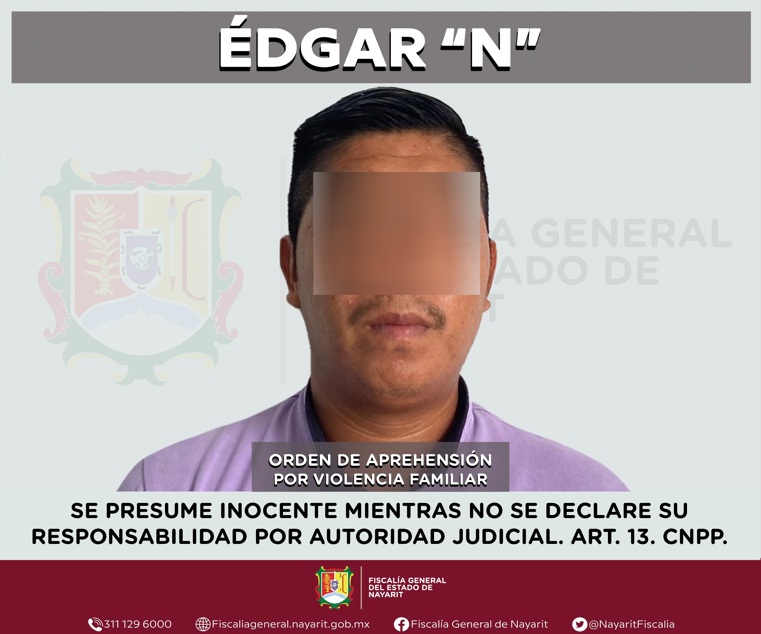 Elementos de la Agencia de Investigación Criminal de Nayarit cumplimentaron una orden de aprehensión en la ciudad de Tepic contra Édgar “N”, por su probable participación en hechos que la legislación vigente tipifica como delito de violecia familiar, cometido en agravio de una persona de sexo femenino cuya identidad se reserva en atención a su derecho a la privacidad e integridad.