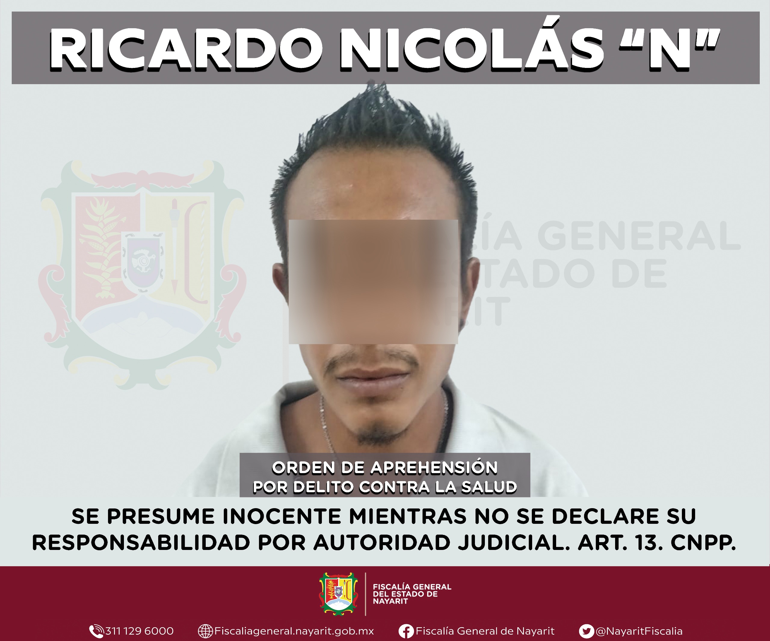 Elementos de la Agencia de Investigación Criminal de Nayarit cumplimentaron una orden de aprehensión en la ciudad de Tepic contra Ricardo Nicolás “N”, por su probable participación en hechos que la legislación vigente tipifica como delito contra la salud en su modalidad de narcomenudeo -en su hipótesis de posesión de psicotrópicos-, cometido en agravio de la sociedad.