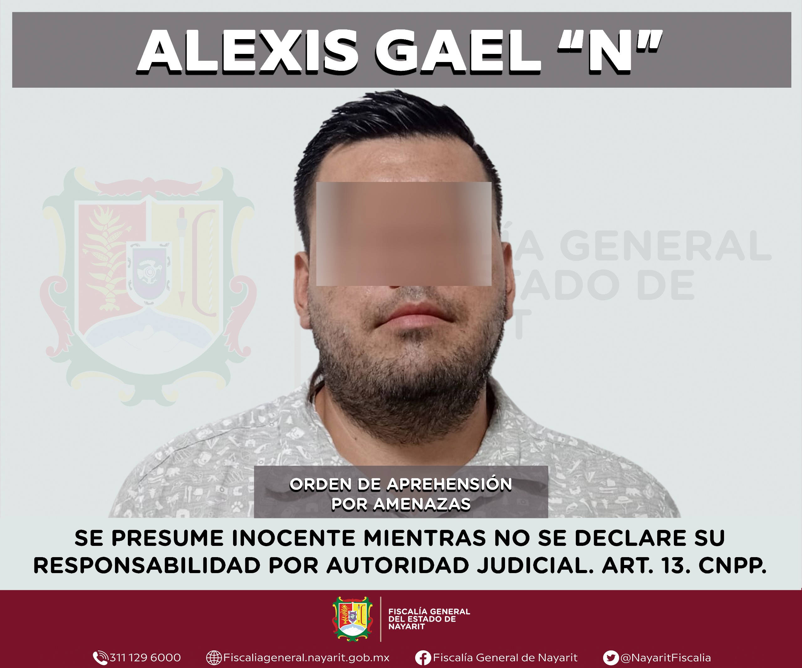 Elementos de la Agencia de Investigación Criminal de Nayarit cumplimentaron una orden de aprehensión en la ciudad de Tepic contra Alexis Gael “N”, por su probable participación en hechos que la legislación vigente tipifica como delito de amenazas, cometido en agravio de una persona de sexo femenino cuya identidad se reserva por respeto a su derecho a la privacidad e integridad.