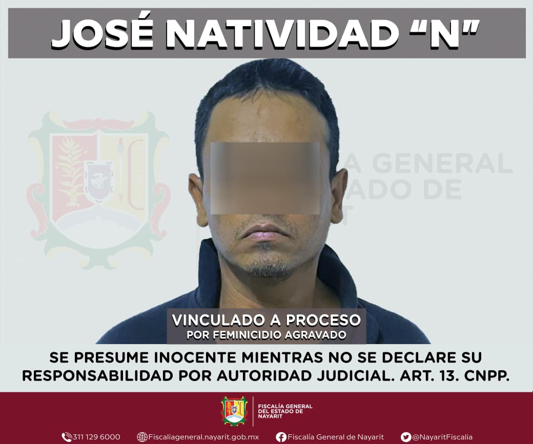 Tepic, Nayarit; 26 de octubre de 2025. – La Fiscalía General del estado de Nayarit informa que un Juez de Control dictó auto de vinculación a proceso contra José Natividad “N”, por su probable participación en el delito de feminicidio agravado, conforme a lo previsto y sancionado en el Código Penal del estado de Nayarit.