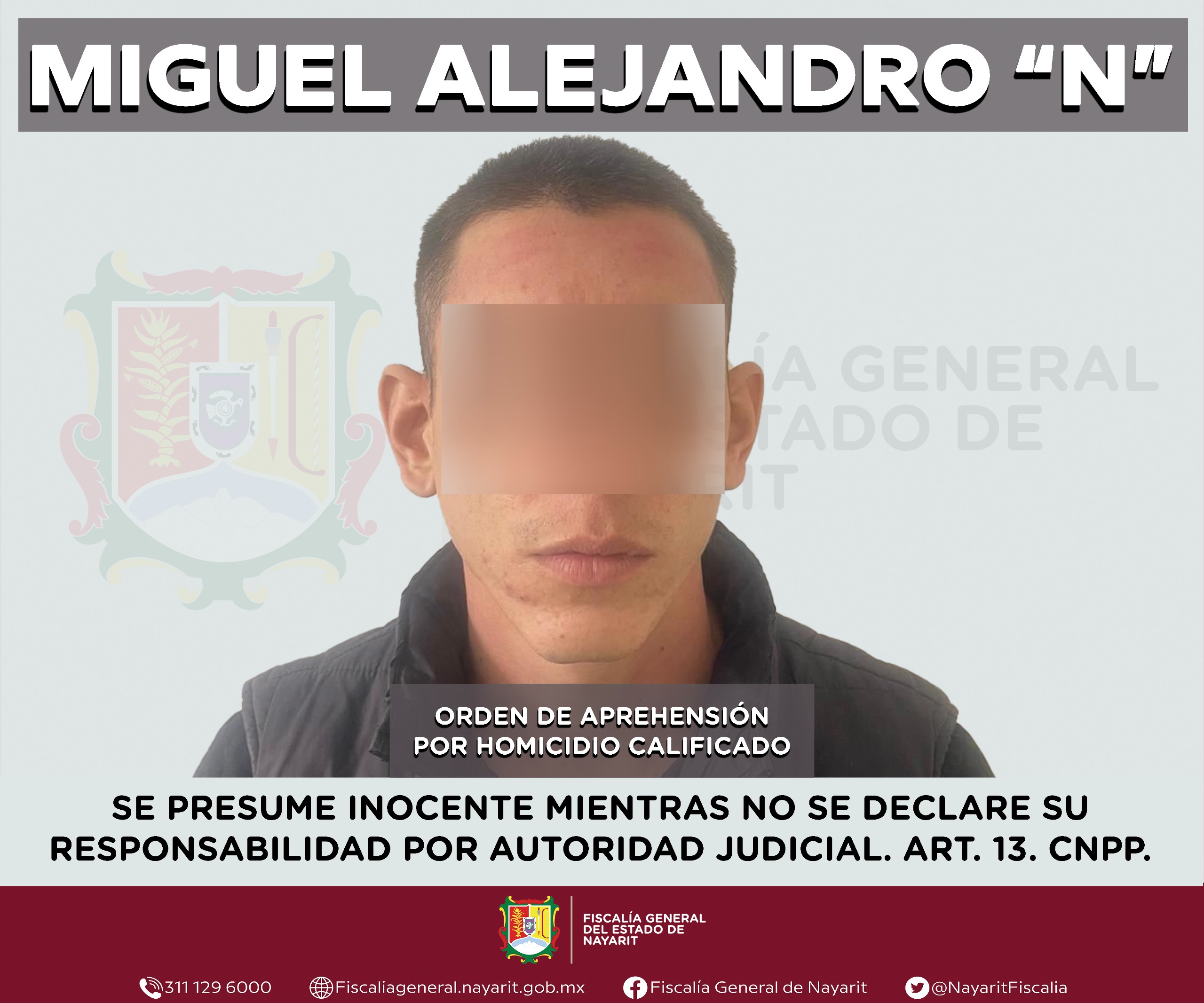 30 de Octubre 2025.- En colaboración con la Fiscalía General del estado de Jalisco, elementos de la Agencia de Investigación Criminal de Nayarit ejecutaron una orden de aprehensión en el municipio de Bahía de Banderas contra Miguel Alejandro “N”, por su probable participación en hechos que la legislación vigente tipifica como delito de homicidio calificado, cometido en el estado de Jalisco, en agravio de una persona de sexo masculino cuya identidad se reserva.