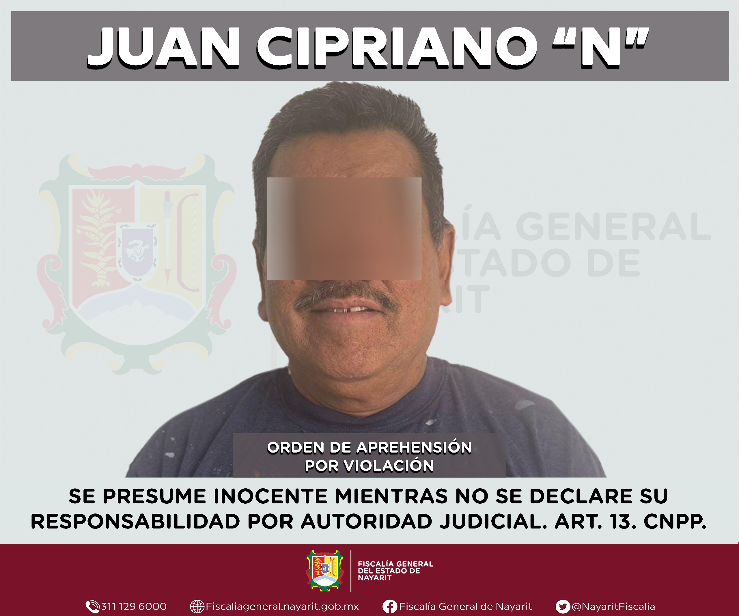 Elementos de la Agencia de Investigación Criminal de Nayarit ejecutaron una orden de aprehensión en la ciudad de Tepic contra Juan Cipriano “N”, por su probable participación en hechos que la legislación vigente tipifica como delito de violación, cometido en agravio de una persona de sexo femenino cuya identidad se reserva por respeto a su derecho a la privacidad e integridad.