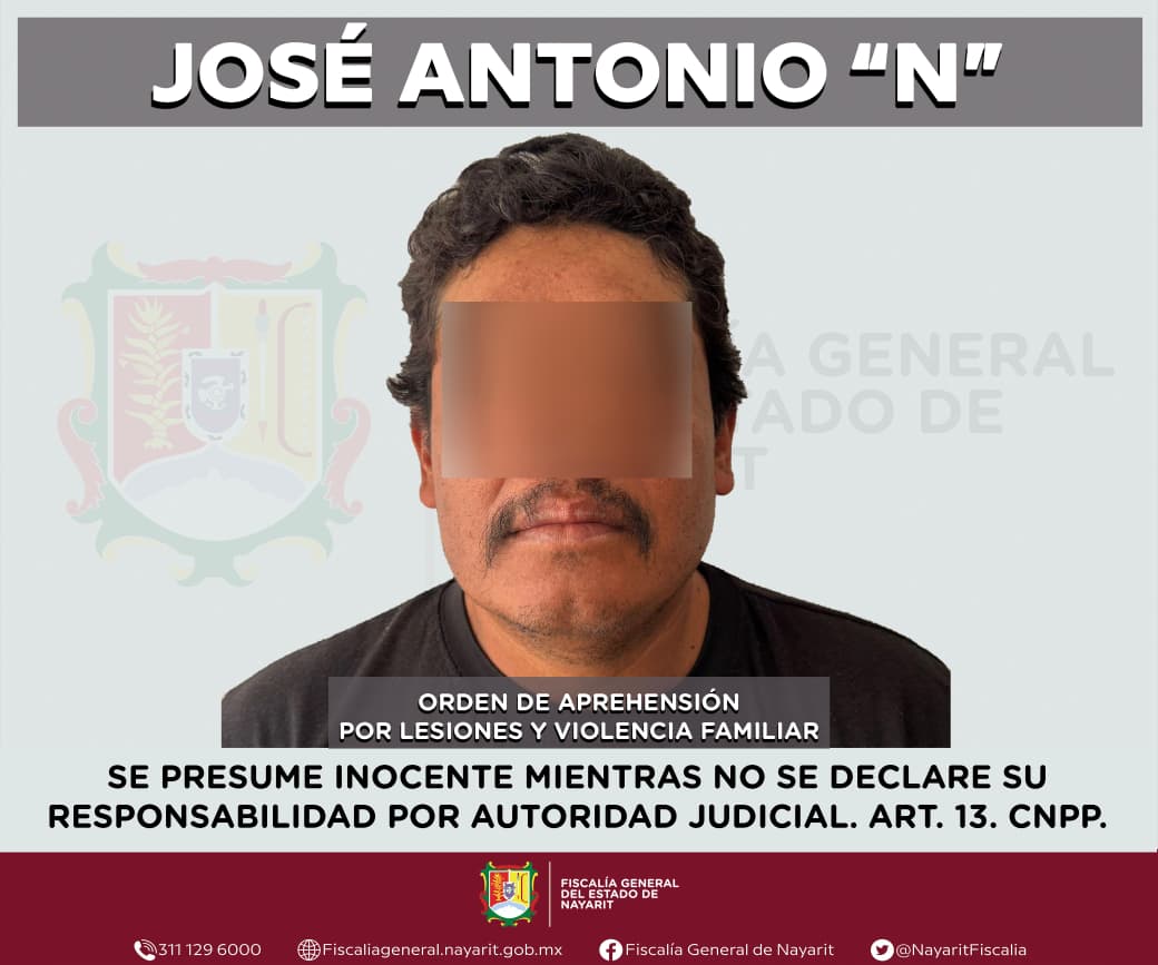 Elementos de la Agencia de Investigación Criminal de Nayarit ejecutaron una orden de aprehensión en el municipio de Ahuacatlán contra José Antonio “N”, por su probable participación en hechos que la legislación vigente tipifica como delitos de lesiones y violencia familiar, cometidos en agravio de una persona de sexo femenino cuya identidad se reserva en atención a su derecho a la privacidad e integridad.