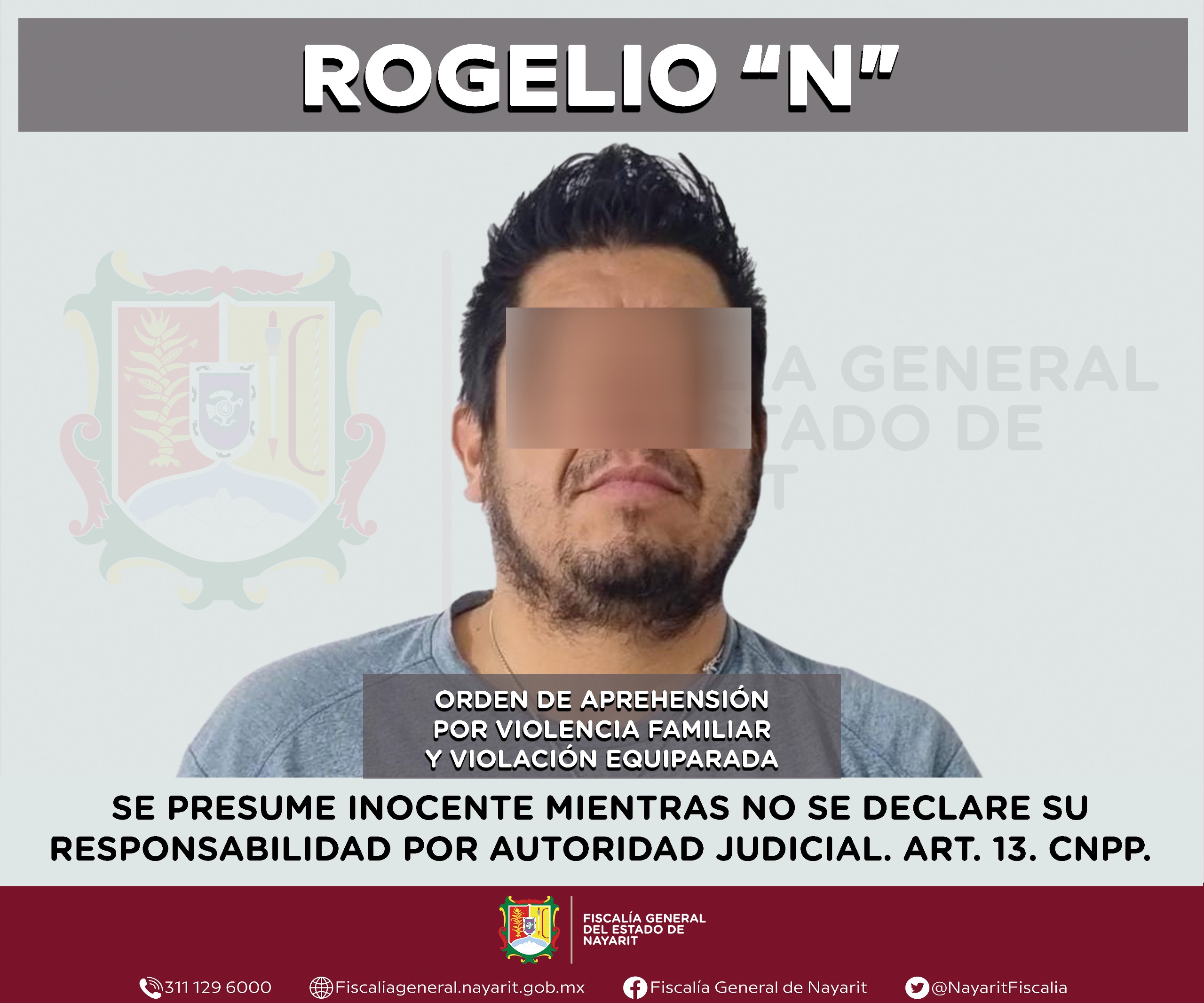 Elementos de la Agencia de Investigación Criminal de Nayarit ejecutaron una orden de aprehensión en la capital nayarita contra Rogelio “N”, por su probable participación en hechos que la legislación vigente tipifica como delitos de violencia familiar y violación equiparada, cometidos en agravio de una mujer cuya identidad se reserva con el propósito de salvaguardar su privacidad e integridad.