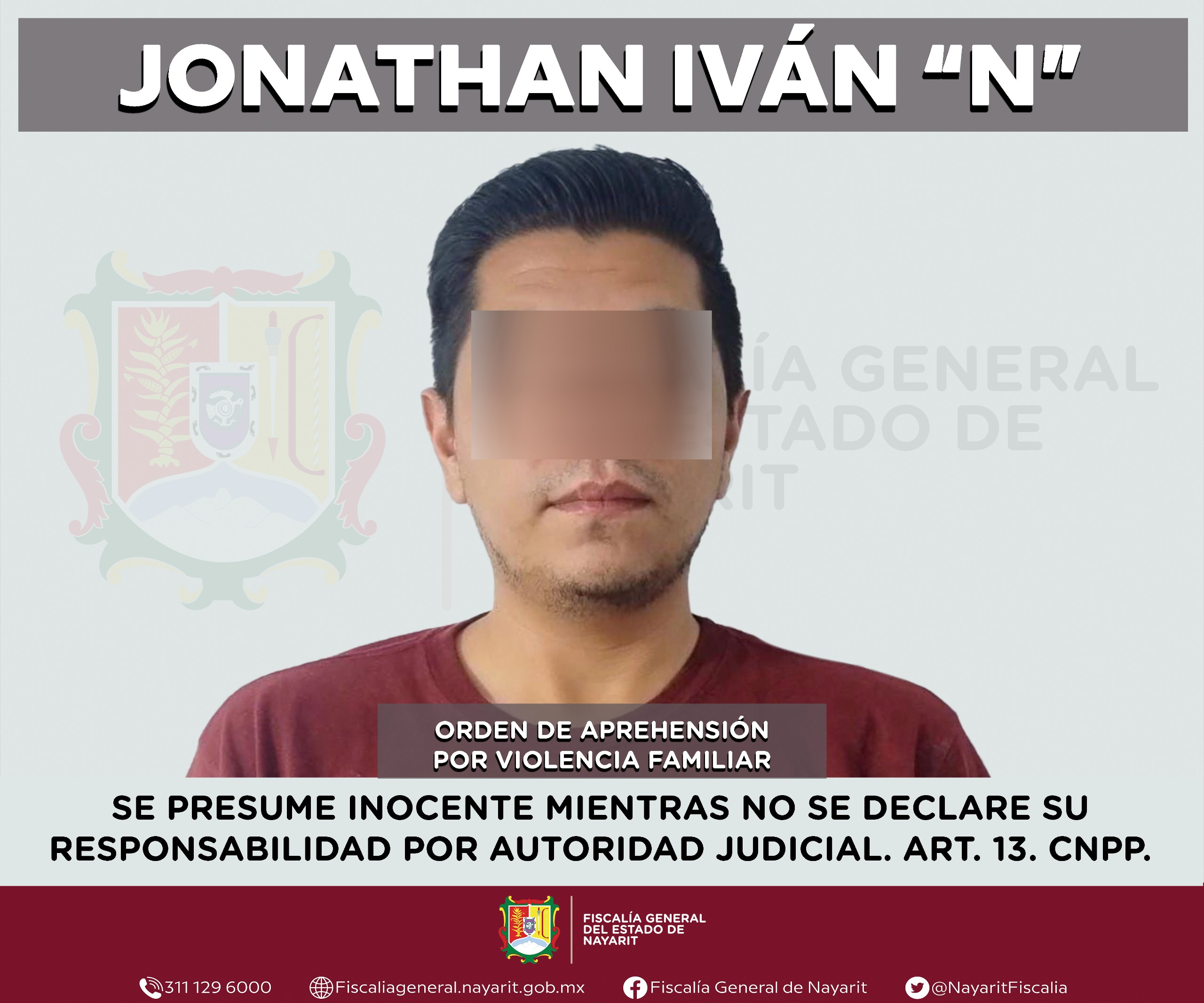 Elementos de la Agencia de Investigación Criminal de Nayarit ejecutaron una orden de aprehensión en la capital nayarita contra Jonathan Iván “N”, por su probable participación en hechos que la legislación vigente tipifica como delito de violencia familiar, cometido en agravio de una mujer cuya identidad se reserva en atención a su derecho a la privacidad e integridad.
