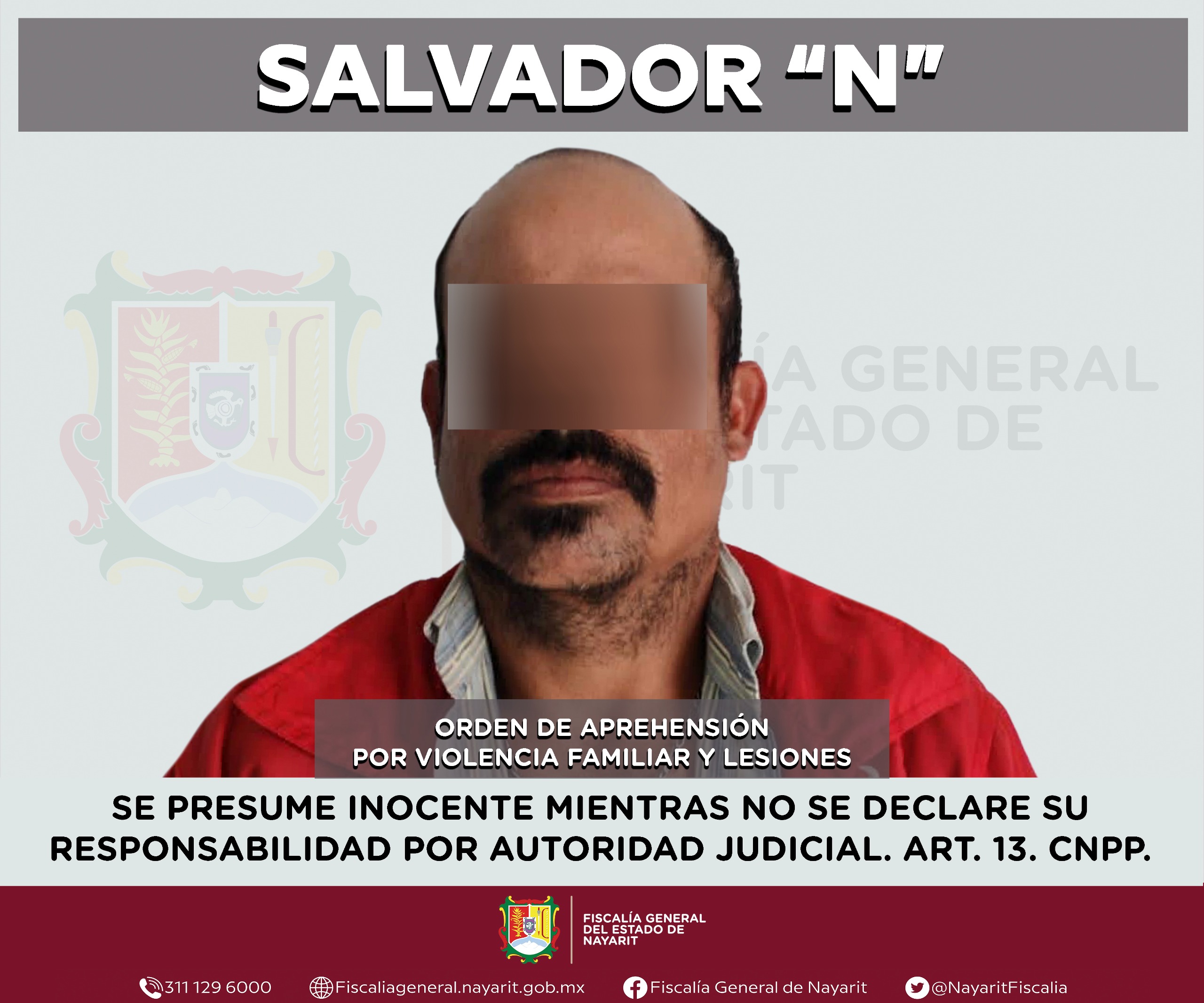 Elementos de la Agencia de Investigación Criminal de Nayarit ejecutaron una orden de aprehensión contra Salvador “N”, por su probable participación en hechos que la legislación vigente tipifica como delitos de violencia familiar y lesiones, cometidos en agravio de una persona de sexo femenino cuya identidad se reserva con el propósito de salvaguardar su privacidad e integridad.