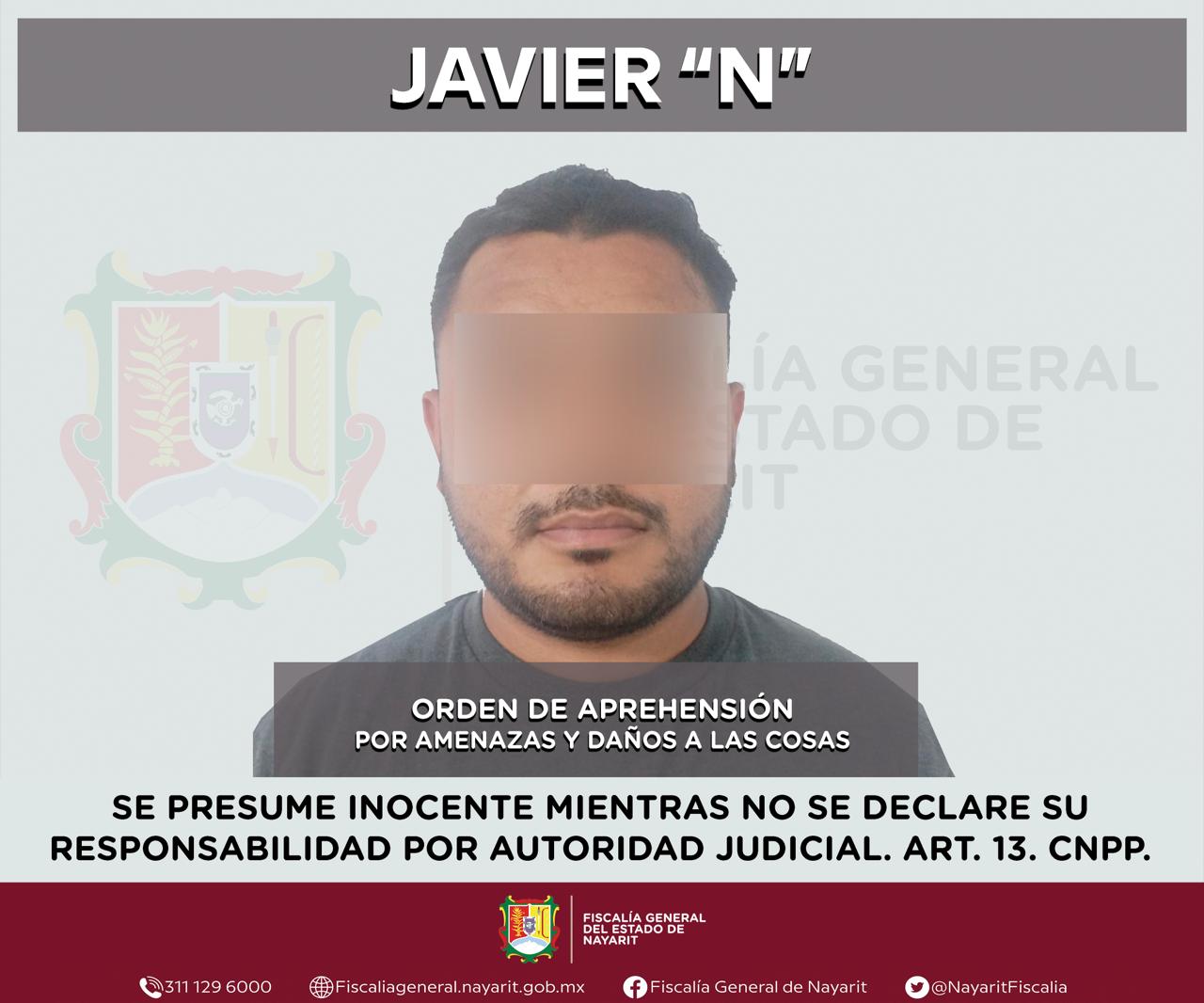 La Fiscalía General del Estado informa que elementos de la Agencia de Investigación Criminal ejecutaron dos órdenes de aprehensión en la ciudad de Tepic contra Javier “N”, la primera por su probable participación en hechos que la ley tipifica como delito de amenazas, mientras que la segunda orden de aprehensión es por su presunta responsabilidad en el delito de daño a las cosas. La identidad de la víctima se reserva con el propósito de salvaguardar su privacidad e integridad.
