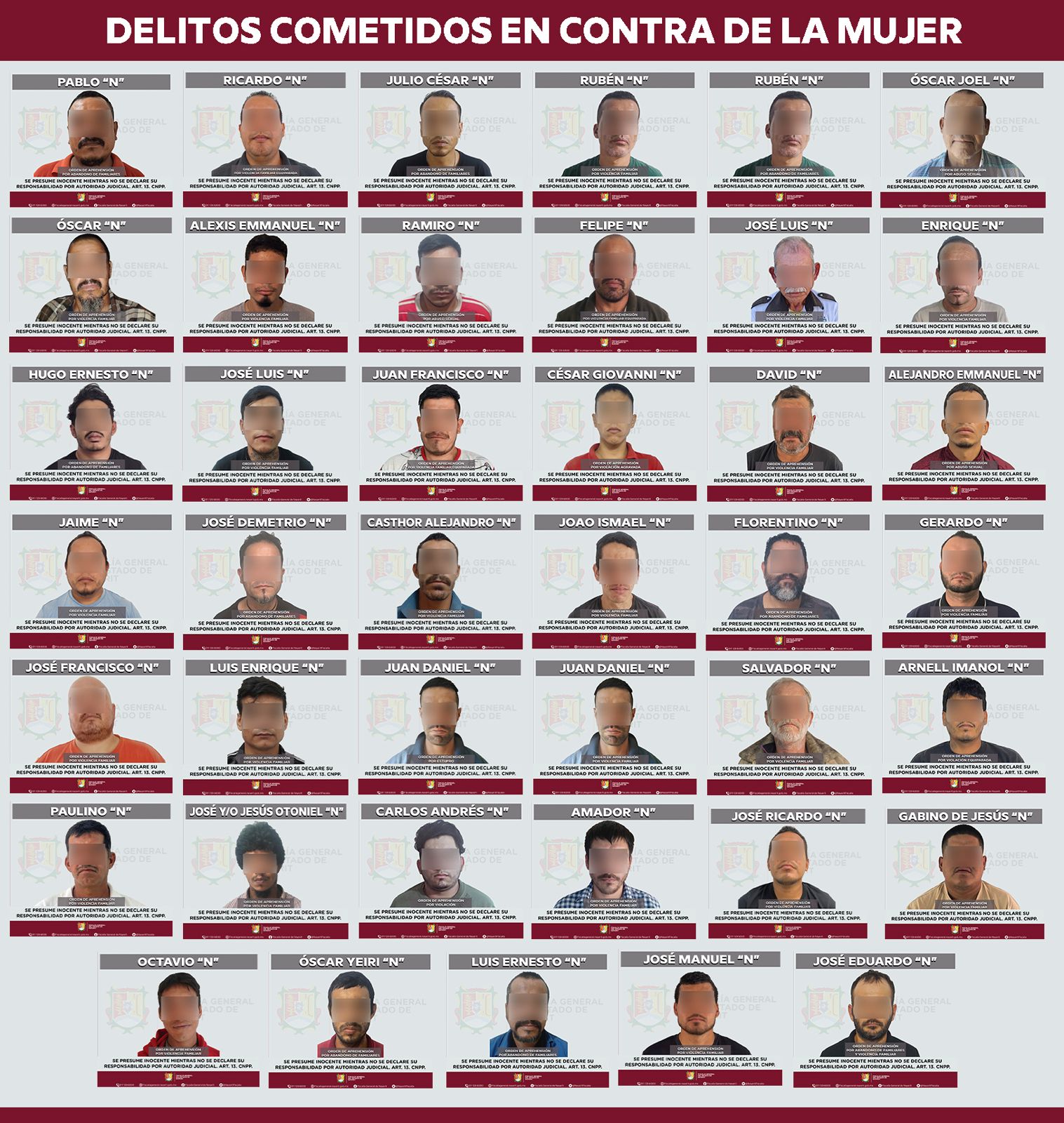 Tepic, Nayarit.– Como resultado del trabajo permanente para fortalecer la seguridad y combatir la delincuencia, la Fiscalía General del estado de Nayarit ejecutó del 12 al 14 de diciembre un total de 66 órdenes de aprehensión por diversos delitos.