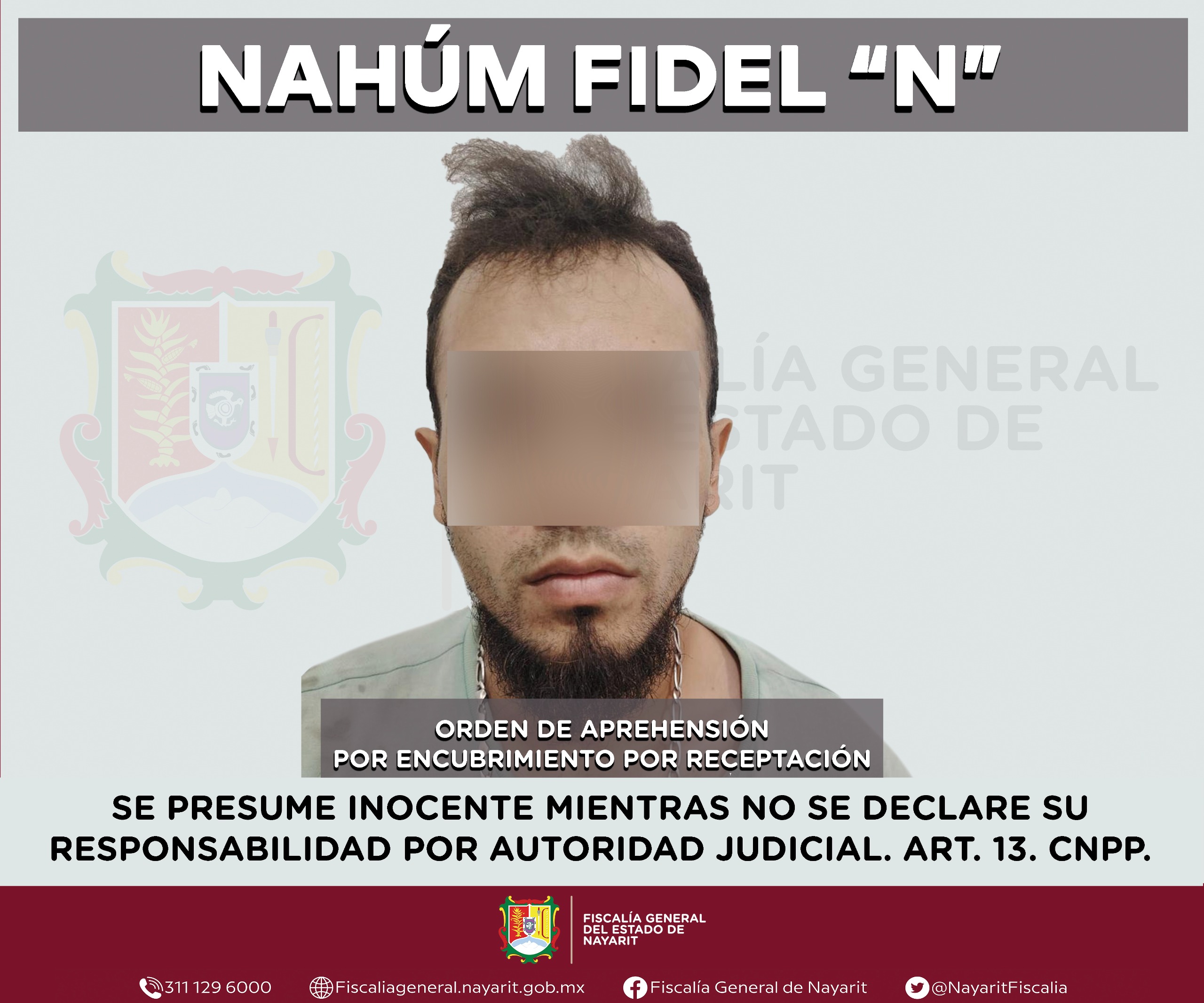Elementos de la Agencia de Investigación Criminal de Nayarit ejecutaron una orden de aprehensión en la capital nayarita contra Nahúm Fidel “N”, por su probable participación en hechos que para la ley configuran el delito de encubrimiento por receptación contra la sociedad.