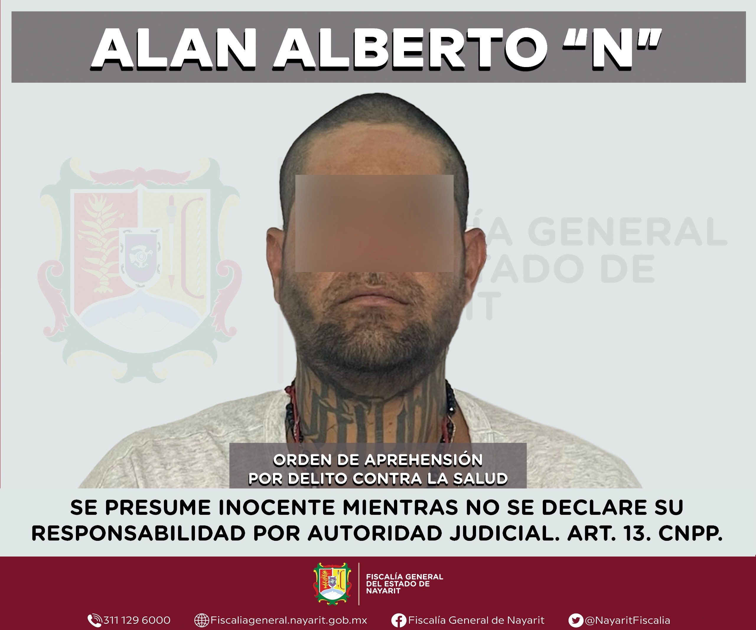 Elementos de la Agencia de Investigación Criminal de Nayarit ejecutaron una orden de aprehensión en la capital nayarita contra Alan Alberto “N”, por su probable participación en hechos que para la ley configuran el delito contra la salud en su modalidad de narcomenudeo -en su hipótesis de posesión de estupefacientes-, cometido contra la sociedad.