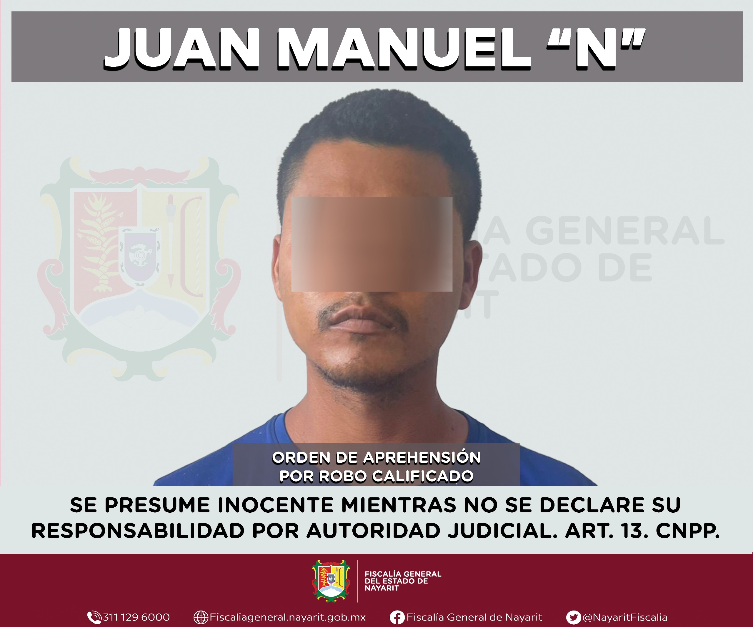 La Fiscalía General de Nayarit a través de la Agencia de Investigación Criminal ejecutó una orden de aprehensión en la ciudad de Tepic contra Juan Manuel “N”, por su probable participación en hechos que para la ley configuran el delito de robo calificado, cometido en agravio de la cadena comercial Oxxo, S. A. de C. V.