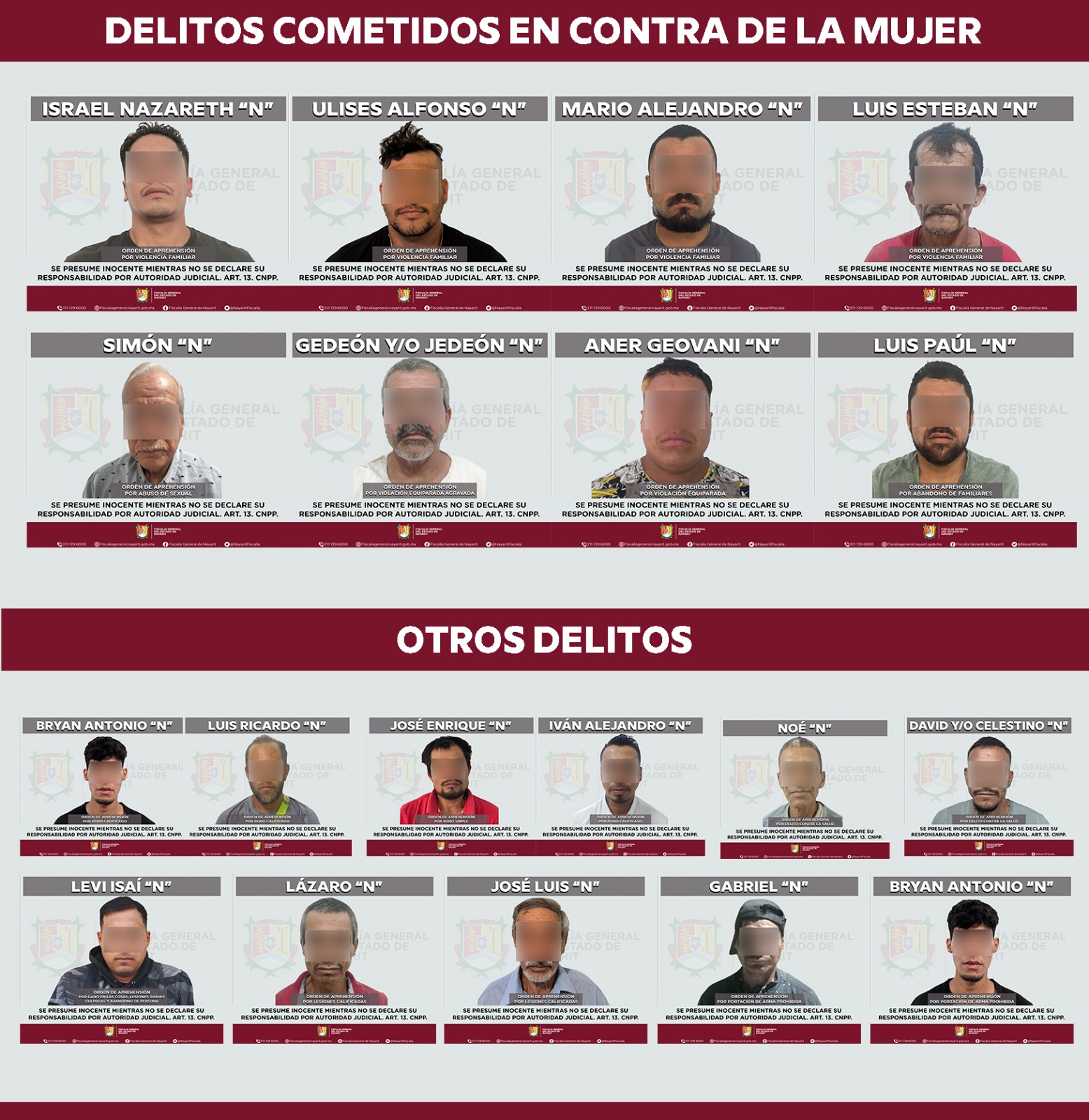 Tepic, Nayarit. – Como resultado del trabajo permanente de investigación y persecución de los delitos, la Fiscalía General del Estado de Nayarit ejecutó el 29 de diciembre un total de 22 órdenes de aprehensión por diversos ilícitos, en distintos municipios de la entidad.
