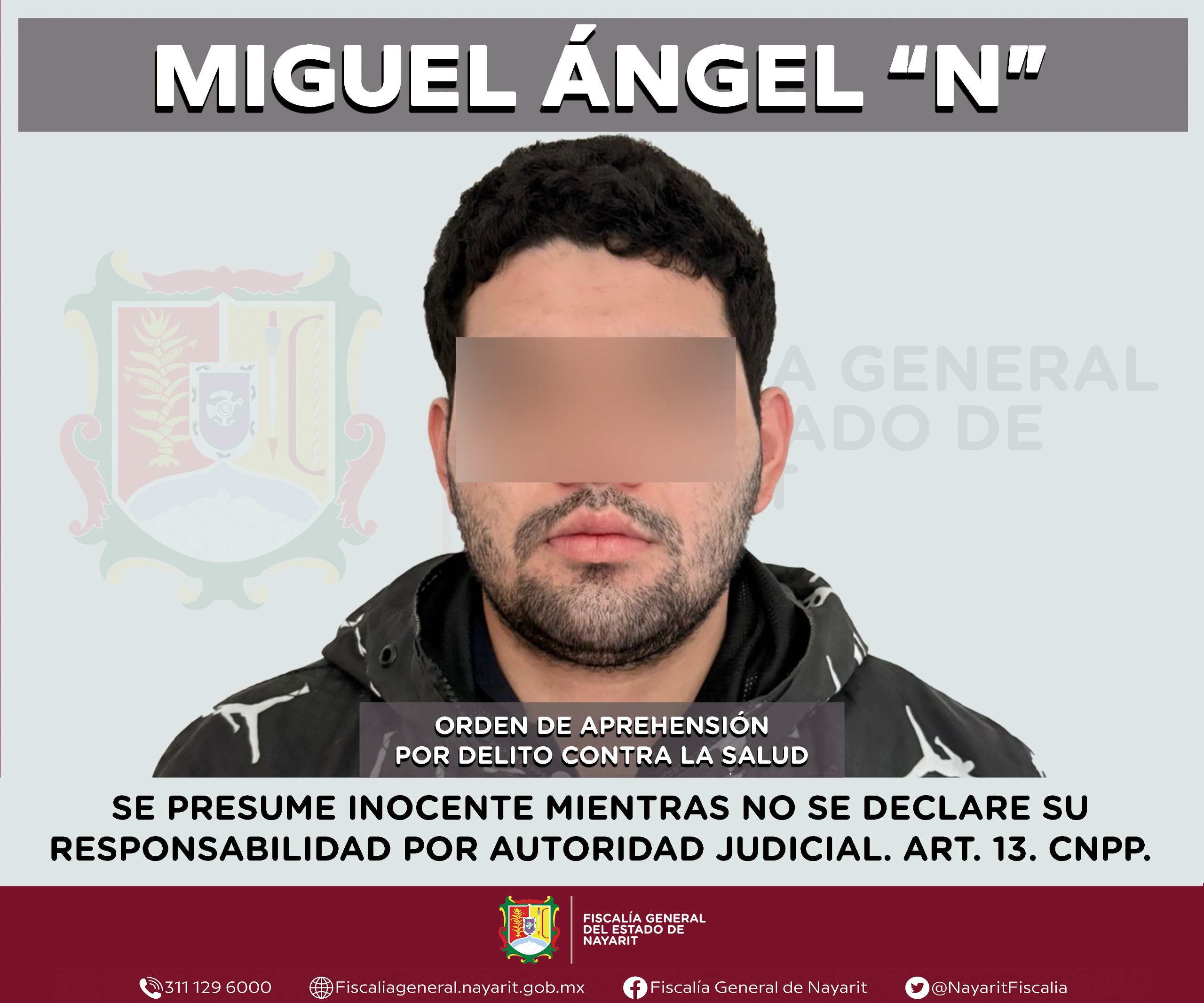 Elementos de la Agencia de Investigación Criminal de Nayarit ejecutaron una orden de aprehensión en la ciudad de Tepic contra Miguel Ángel “N”, por su probable participación en hechos que para la ley configuran el delito contra la salud en su modalidad de narcomenudeo -en su hipótesis de posesión de psicotrópicos-, cometido en agravio de la sociedad.