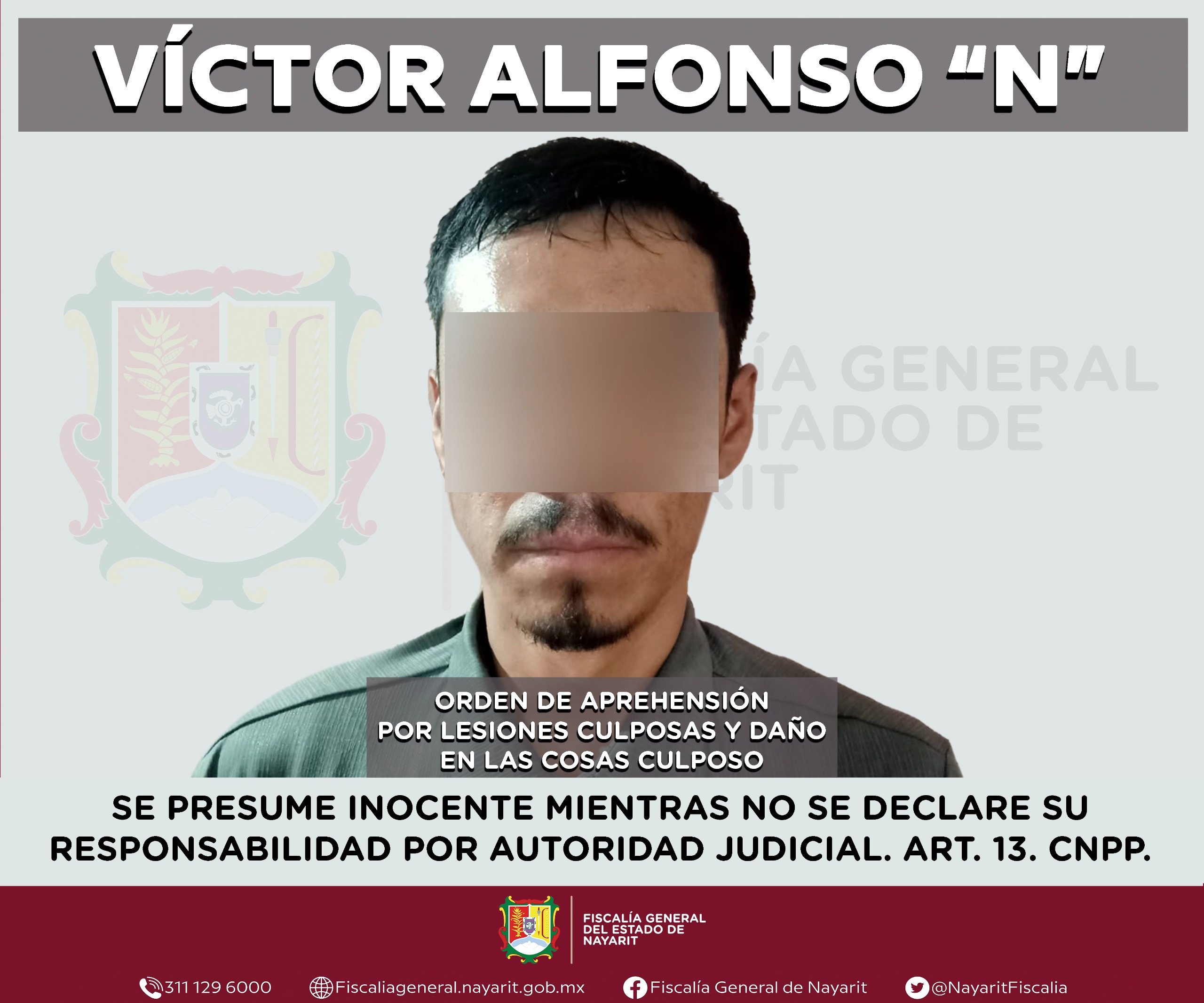 Elementos de la Agencia de Investigación Criminal de Nayarit ejecutaron una orden de aprehensión en el municipio de Jala contra Víctor Alfonso “N”, por su probable participación en hechos que para la ley configuran los delitos de lesiones culposas y daño en las cosas culposo, cometidos en agravio de tres personas -dos de sexo masculino y una de sexo femenino-, cuyas identidades se reservan para salvaguardar su privacidad e integridad.