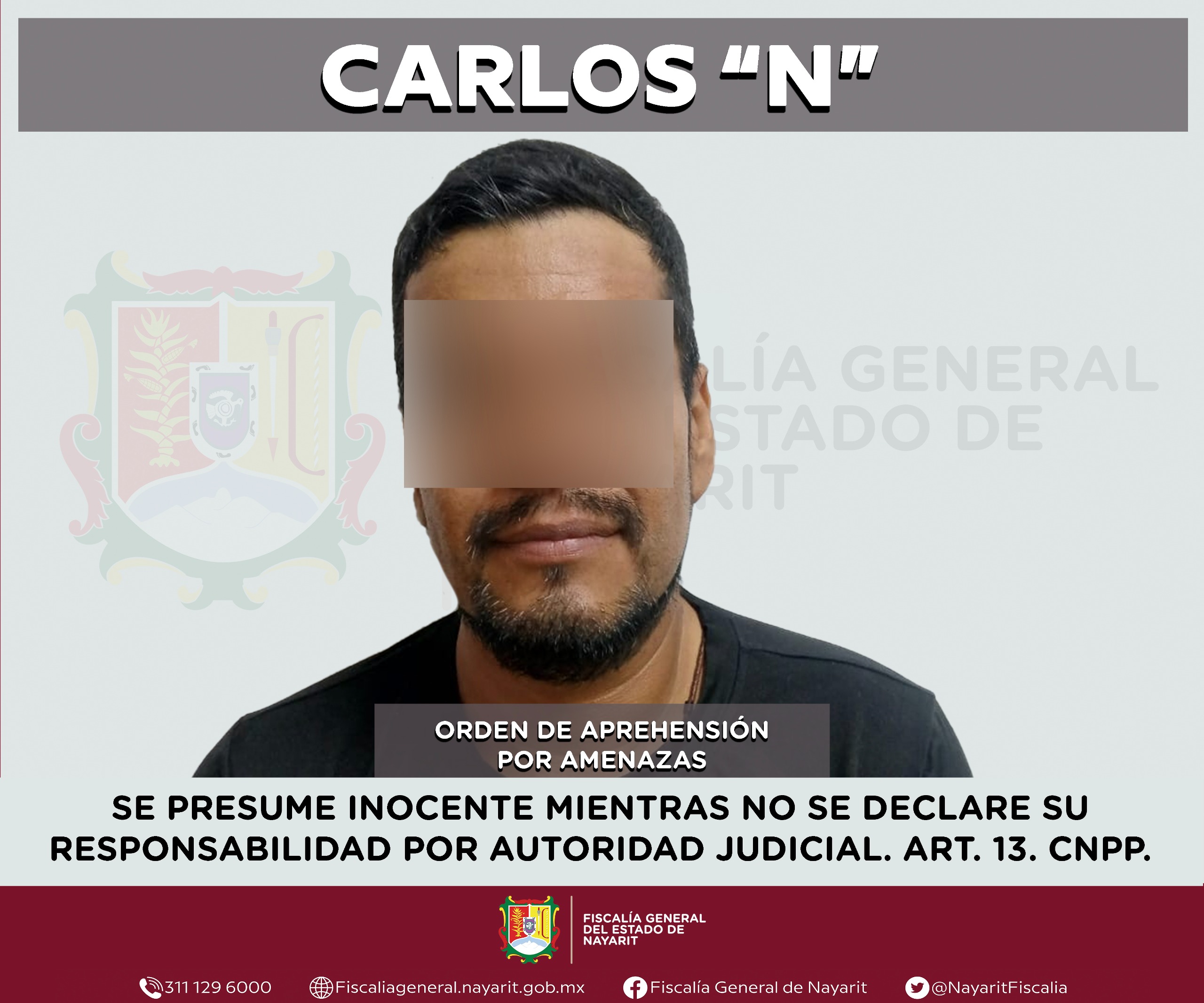 Elementos de la Agencia de Investigación Criminal de Nayarit ejecutaron una orden de aprehensión en el municipio de Santiago Ixcuintla contra Carlos “N”, por su probable participación en hechos que para la ley configuran el delito de amenazas, cometido contra una persona de sexo masculino de la cual se reserva la identidad para salvaguardar su privacidad e integridad.