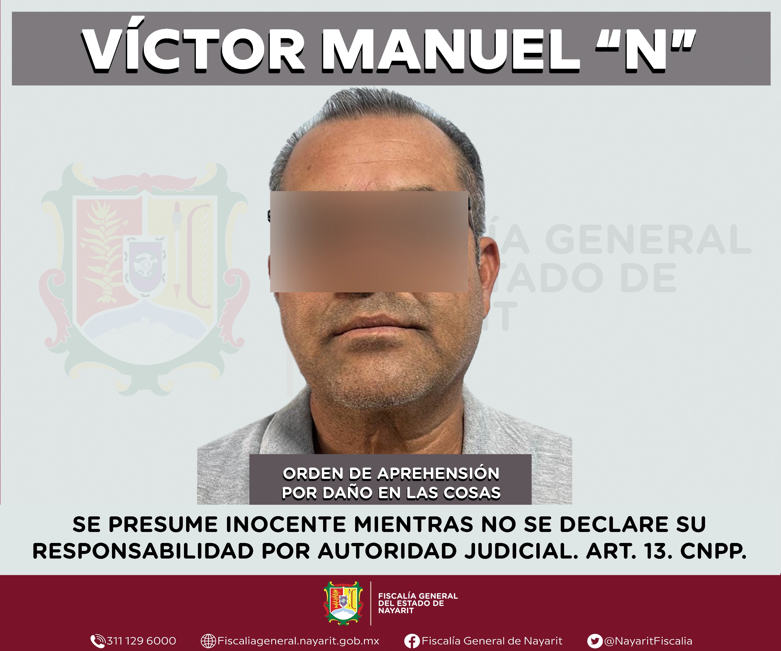 Elementos de la Agencia de Investigación Criminal de Nayarit ejecutaron una orden de aprehensión en el municipio de Xalisco contra Víctor Manuel “N”, por su probable participación en hechos que para la ley configuran el delito de daño en las cosas, cometido contra una persona de sexo femenino de la cual se reserva la identidad para salvaguardar su privacidad e integridad.
