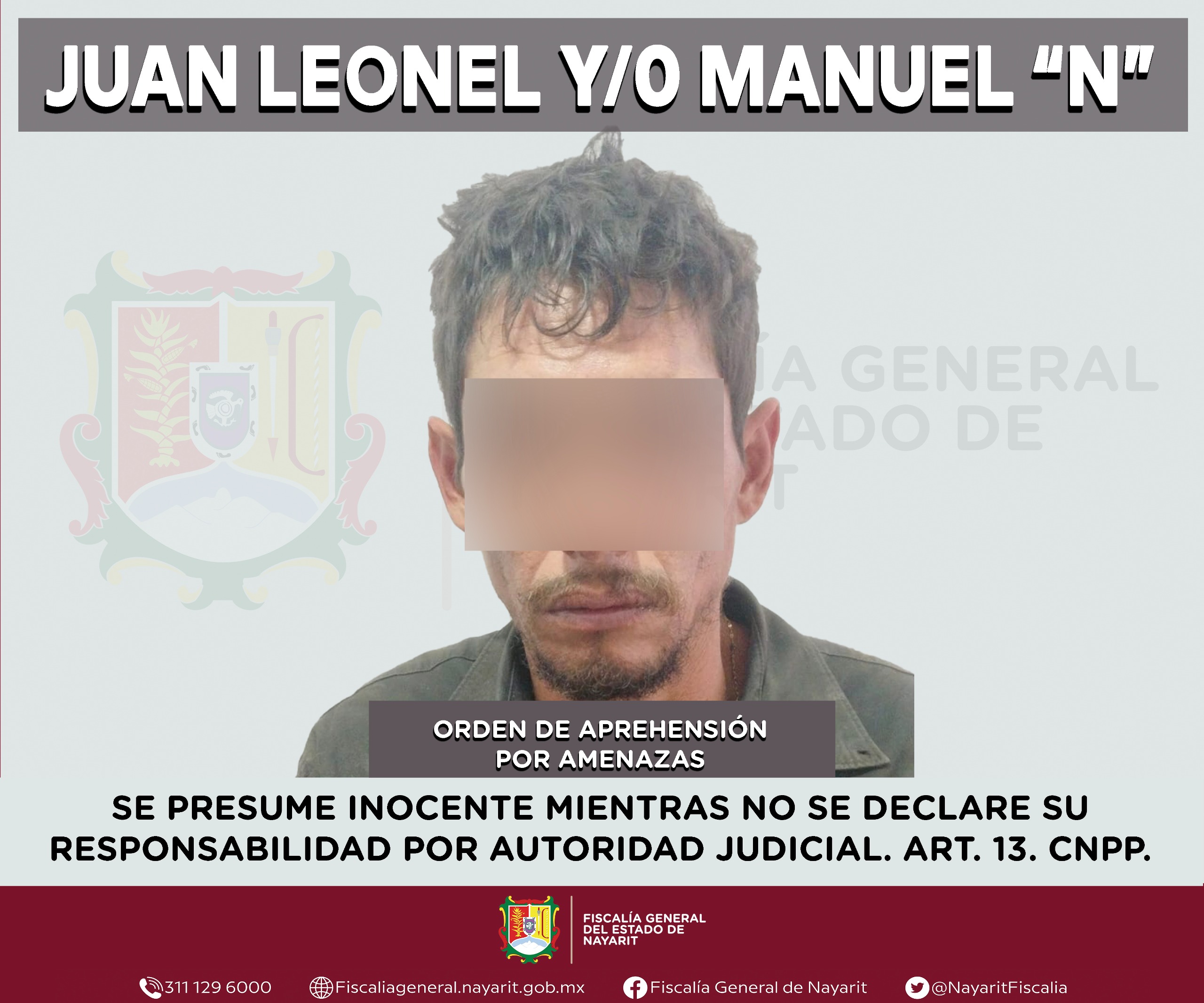 Elementos de la Agencia de Investigación Criminal de Nayarit ejecutaron dos órdenes de aprehensión en el municipio de Tecuala contra Juan Leonel y/o Manuel “N”, por su probable participación en hechos que para la ley configuran el delito de amenazas, cometido contra una persona de sexo masculino de la cual se reserva la identidad para salvaguardar su privacidad e integridad.