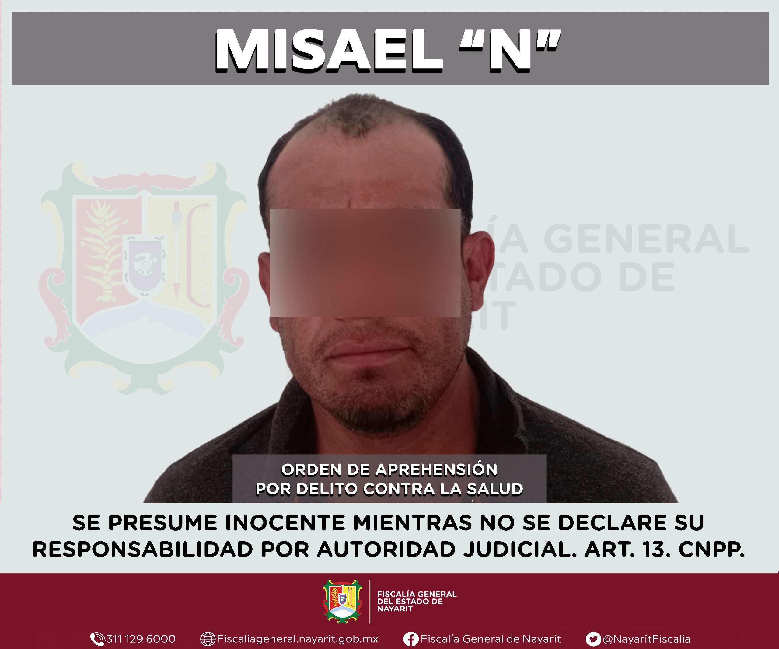 Elementos de la Agencia de Investigación Criminal de Nayarit ejecutaron una orden de aprehensión en la ciudad de Tepic contra Misael “N”, por su probable participación en hechos que para la ley configuran el delito contra la salud en su modalidad de narcomenudeo -en su hipótesis de posesión de psicotrópicos-, cometido en agravio de la sociedad.