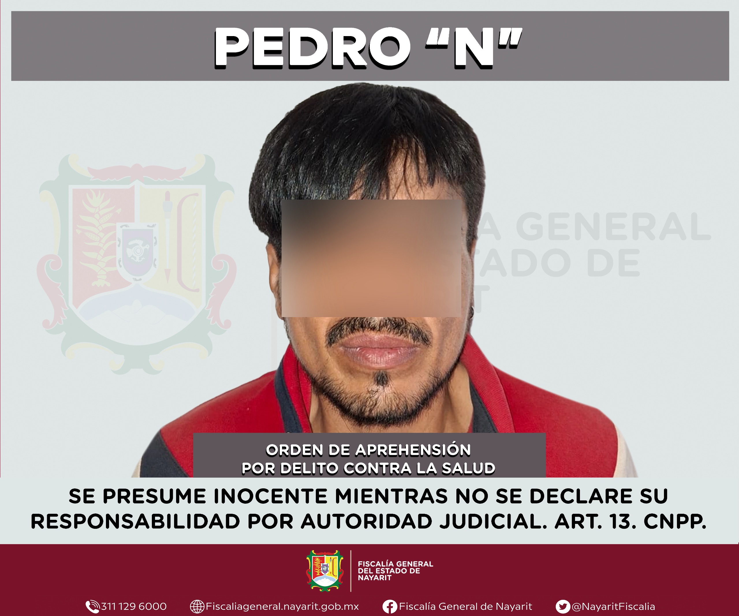 Elementos de la Agencia de Investigación Criminal de Nayarit ejecutaron una orden de aprehensión en el municipio de Bahía de Banderas contra Pedro “N”, por su probable participación en hechos que para la ley configuran el delito contra la salud en su modalidad de narcomenudeo -en su hipótesis de posesión de psicotrópicos-, cometido contra la sociedad.