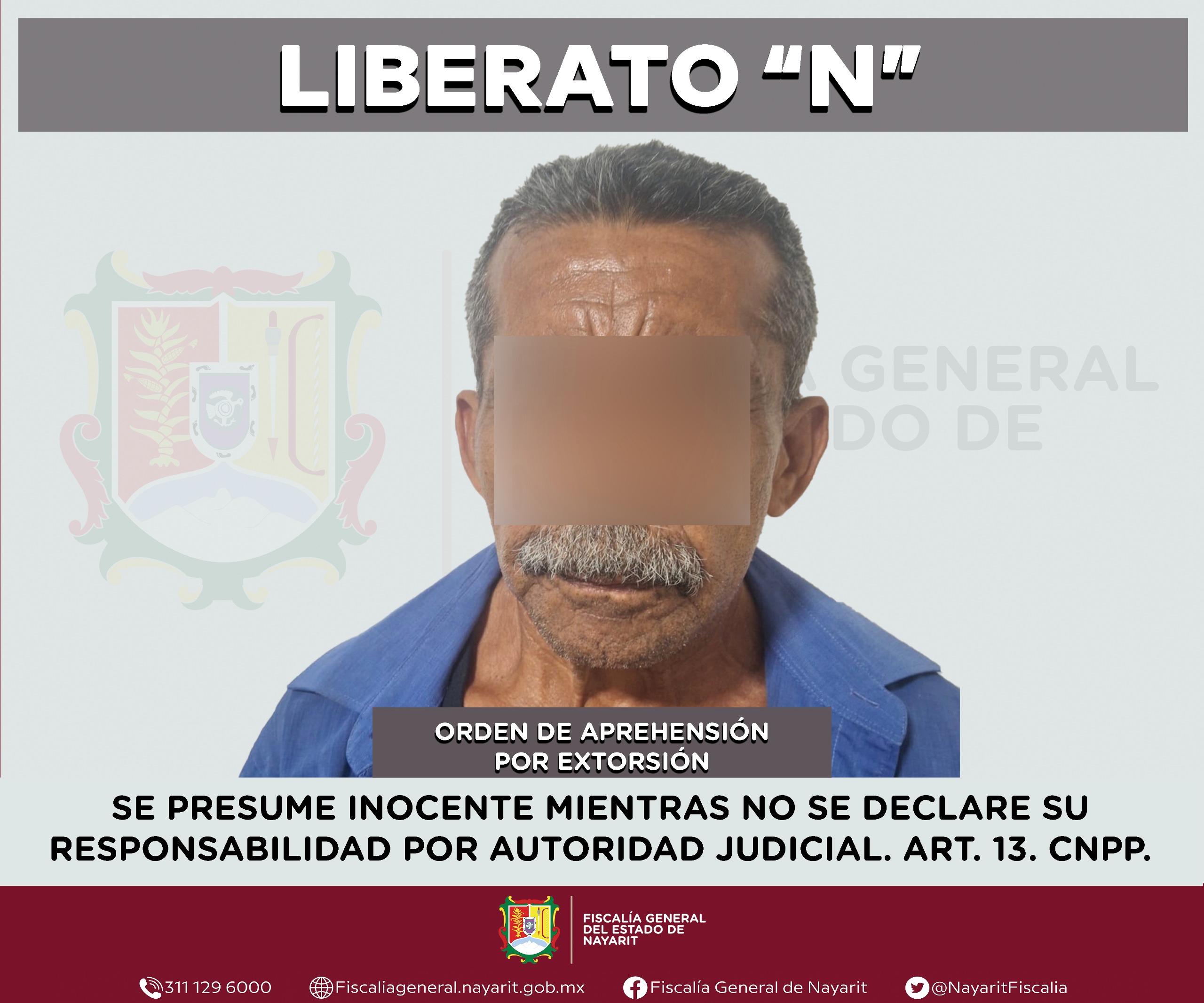 Elementos de la Agencia de Investigación Criminal de Nayarit ejecutaron una orden de aprehensión en la localidad San Felipe Aztatán, municipio de Tecuala contra Liberato “N”, por su probable participación en hechos que para la ley configuran el delito de extorsión, cometido en agravio de una persona de sexo masculino de la cual se reserva la identidad para salvaguardar su privacidad e integridad.