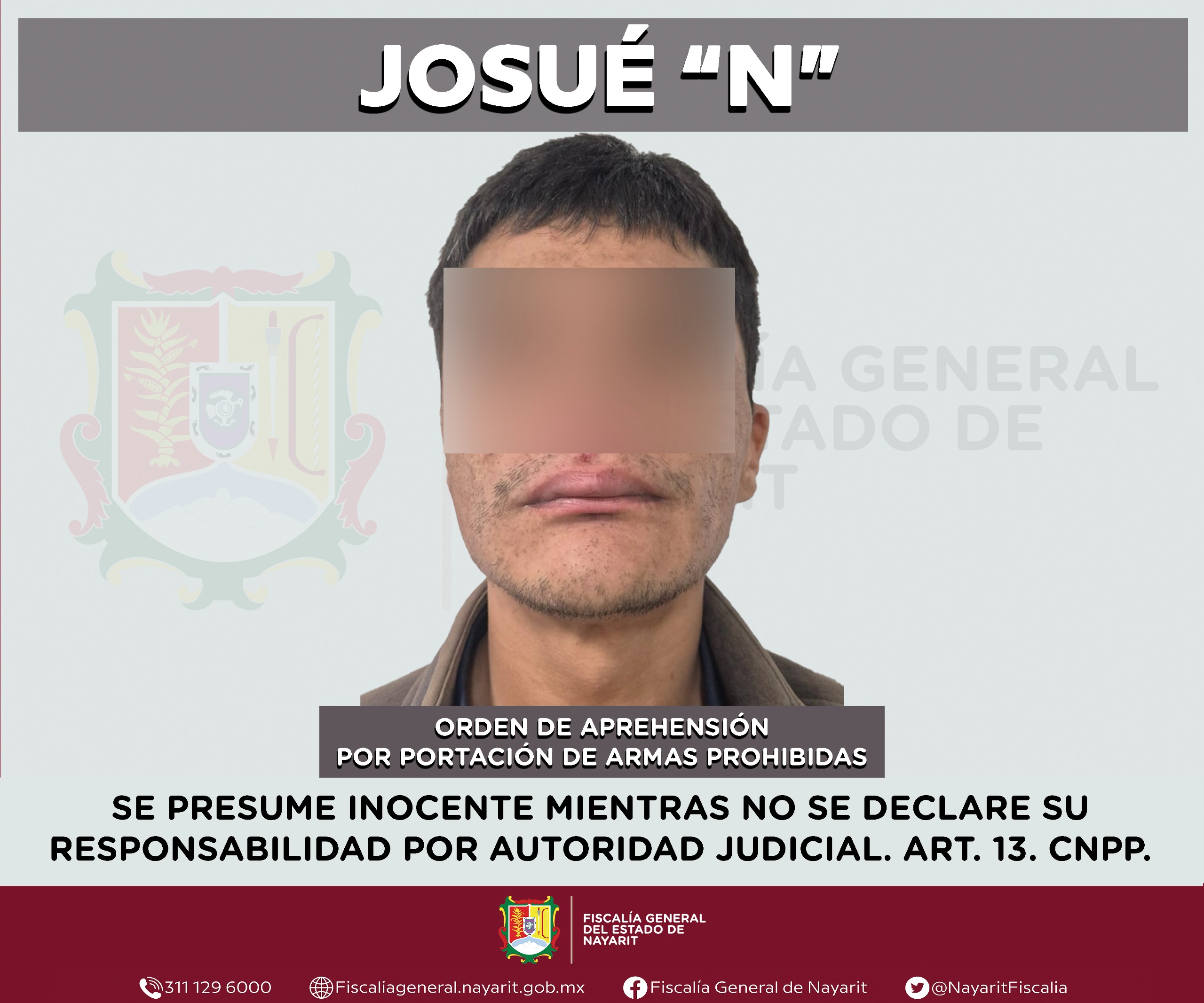 La Fiscalía General de Nayarit a través de la Agencia de Investigación Criminal ejecutó una orden de aprehensión en el municipio de Bahía de Banderas contra Josué “N”, por su probable participación en hechos que para la ley configuran el delito de arma prohibida en su modalidad de portación, cometido en agravio de la sociedad.