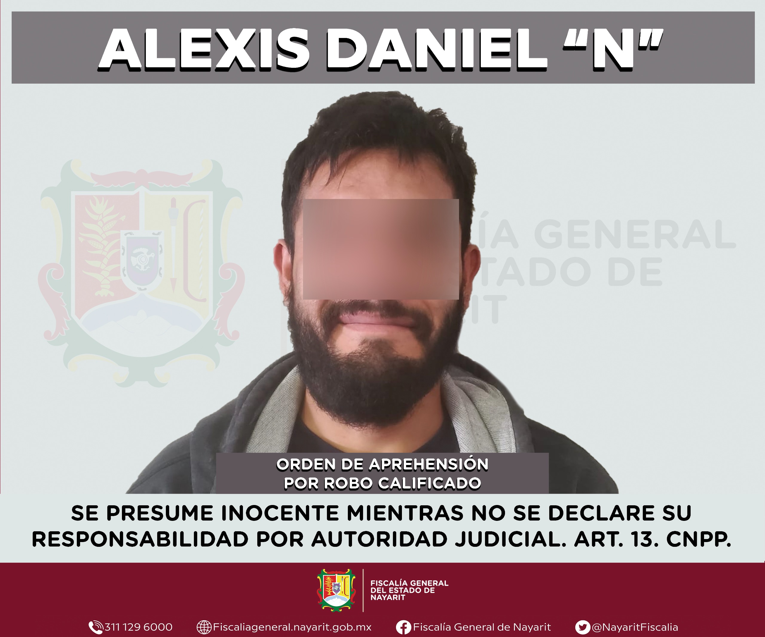 Elementos de la Agencia de Investigación Criminal de Nayarit ejecutaron una orden de aprehensión en la capital nayarita contra Alexis Daniel “N”, por su probable participación en hechos que para la ley configuran el delito de robo calificado, cometido en perjuicio de una persona de sexo femenino cuya identidad se reserva para salvaguardar su privacidad.