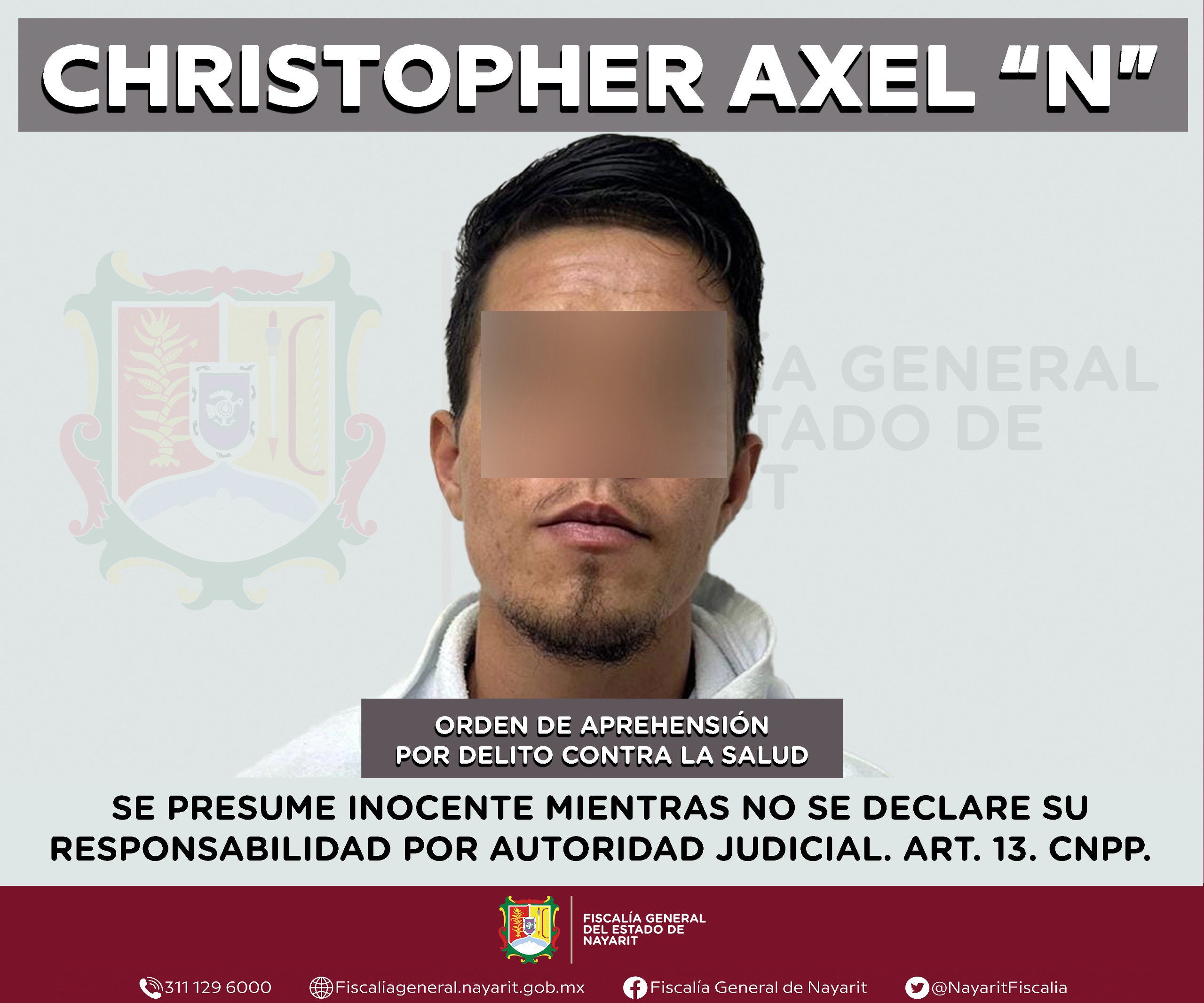 Elementos de la Agencia de Investigación Criminal de Nayarit ejecutaron una orden de aprehensión contra Christopher Axel “N”, por su presumible participación en hechos que para la ley configuran el delito contra la salud en su modalidad de narcomenudeo -en su hipótesis de posesión de estupefacientes-, cometido en agravio de la sociedad.