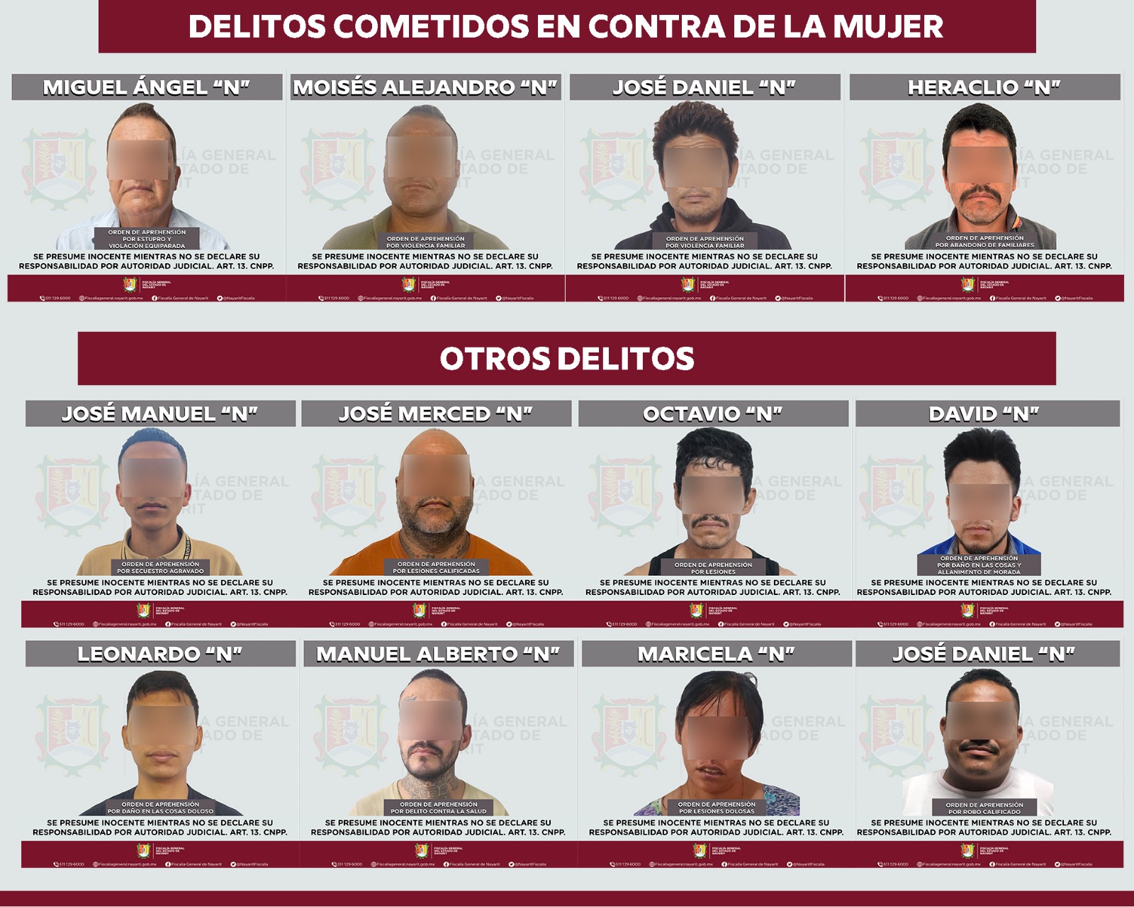 Asimismo, se cumplimentaron 10 órdenes de aprehensión adicionales por otros delitos: