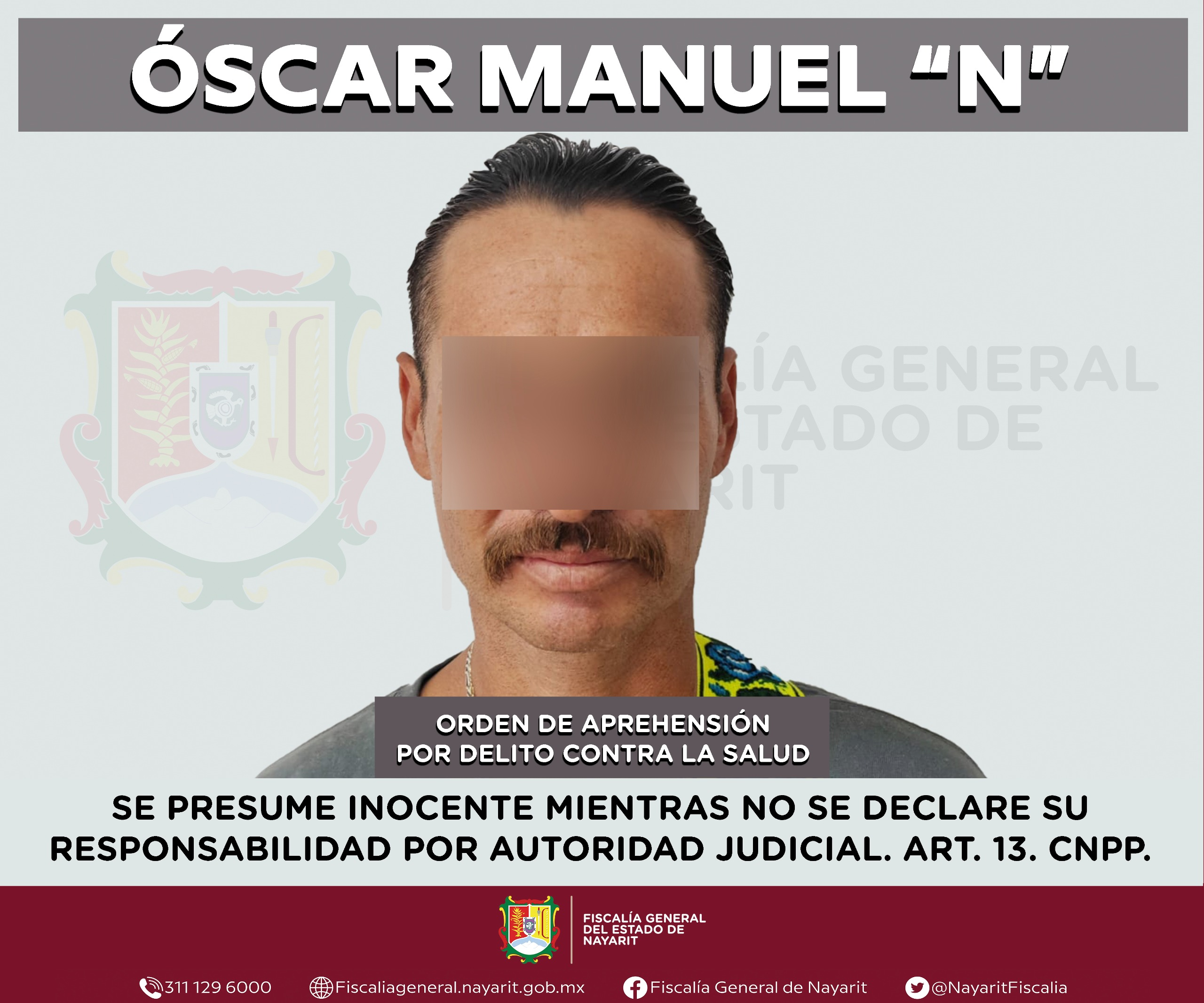 La Fiscalía General de Nayarit a través de la Agencia de Investigación Criminal ejecutó una orden de aprehensión en la ciudad de Tepic contra Óscar Manuel “N”, por su presumible participación en hechos que para la ley configuran el delito contra la salud en su modalidad de narcomenudeo -en su hipótesis de posesión de psicotrópicos-, cometido en agravio de la sociedad.