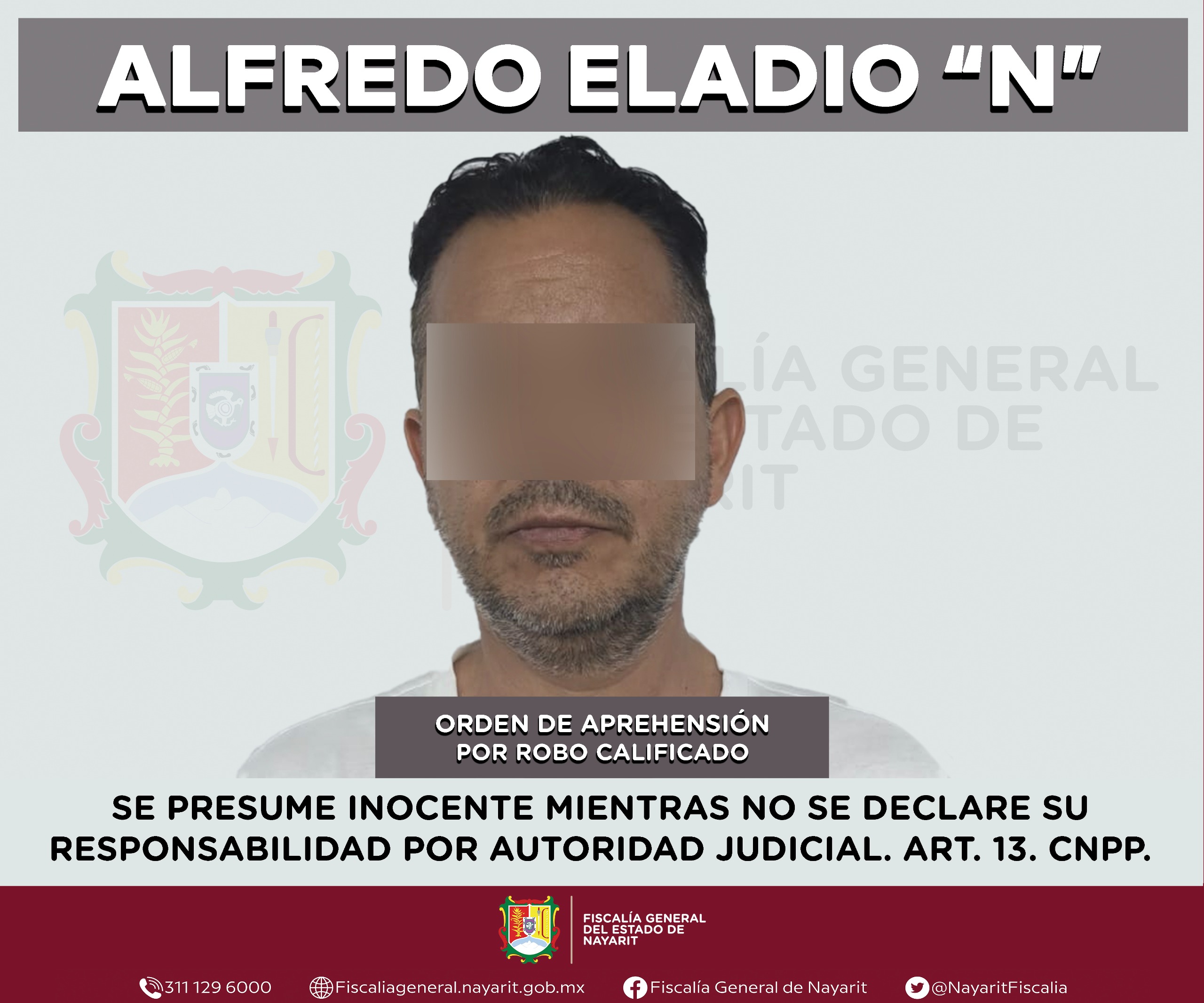 La Fiscalía General de Nayarit a través de la Agencia de Investigación Criminal ejecutó una orden de aprehensión en la ciudad de Tepic contra Alfredo Eladio “N”, por su presumible participación en hechos que para la ley configuran el delito de robo calificado, cometido en agravio de una tienda Bodega Aurrera ubicada en la ciudad de Tepic.