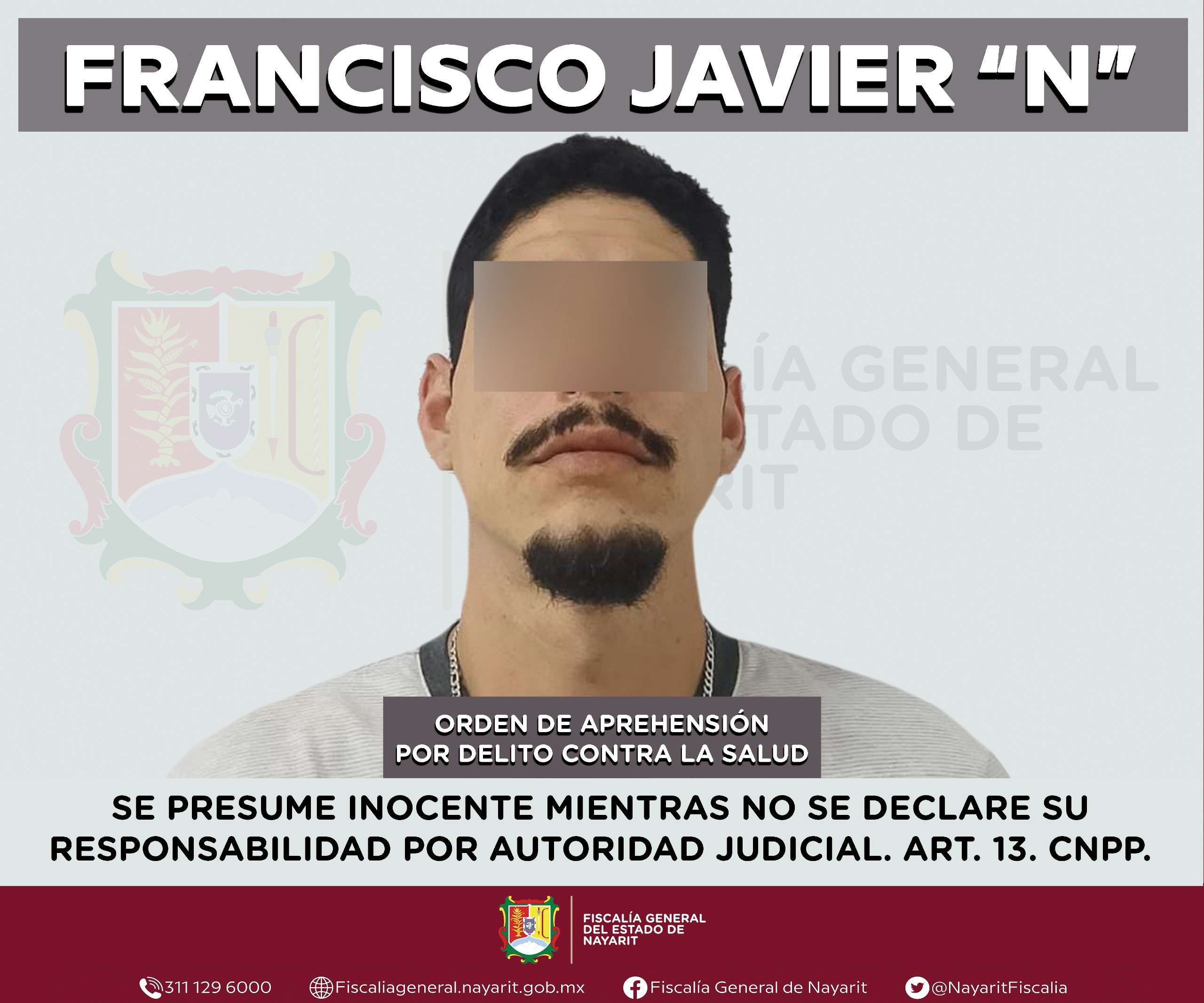 La Fiscalía General de Nayarit a través de la Agencia de Investigación Criminal ejecutó una orden de aprehensión en la ciudad de Tepic contra Francisco Javier “N”, por su presumible participación en hechos que para la ley configuran el delito contra la salud en su modalidad de narcomenudeo -en su hipótesis de posesión de estupefacientes-, cometido en agravio de la sociedad.