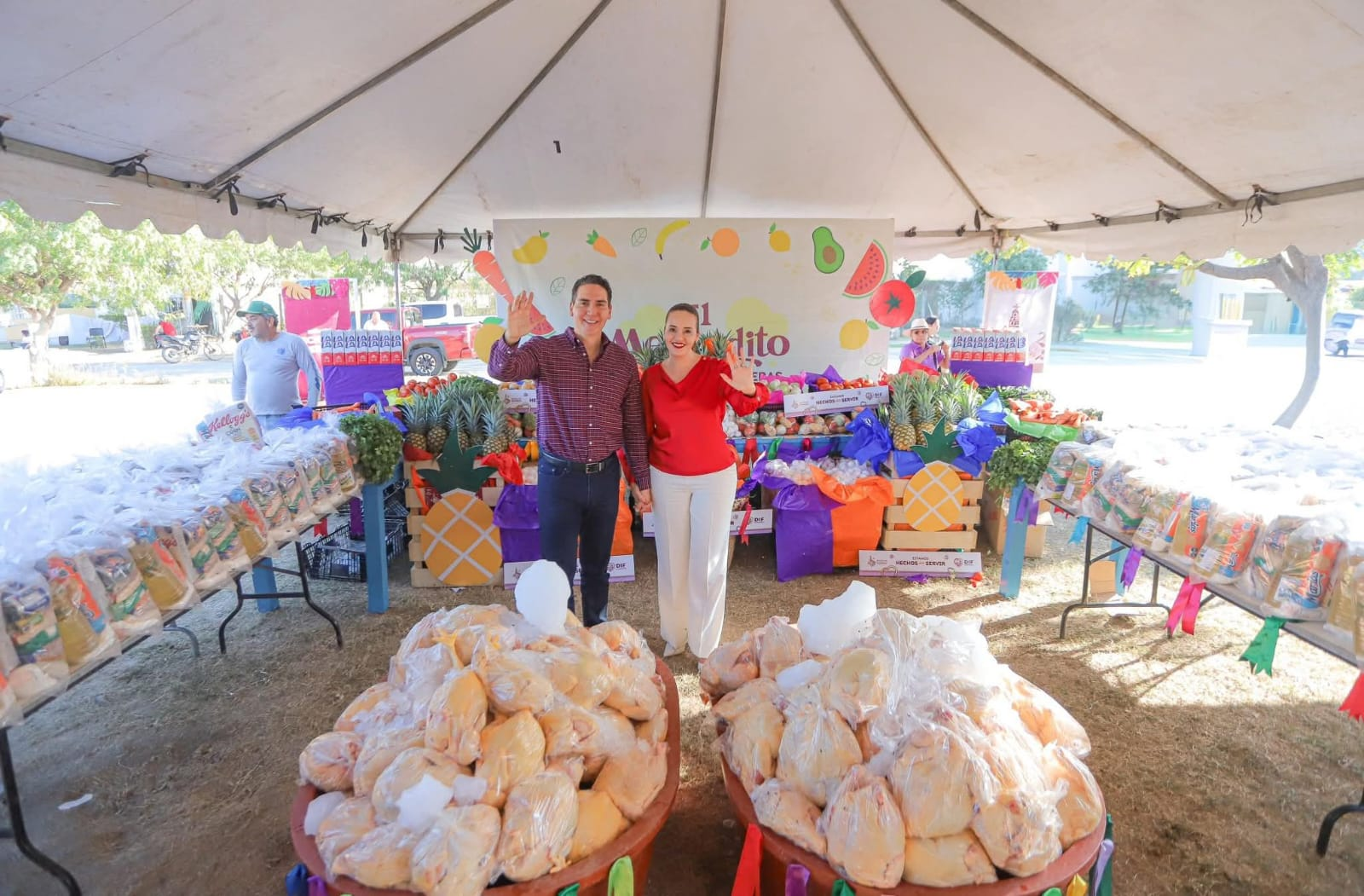 El Mercadito llegó al Fraccionamiento Azul Turquesa como parte de las acciones de apoyo social impulsadas por el presidente municipal, Héctor Santana, y la presidenta del Sistema DIF Bahía de Banderas, Margui Zúñiga de Santana.