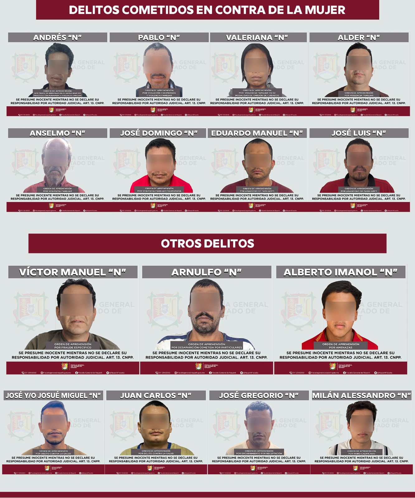 Asimismo, se ejecutaron diez órdenes de aprehensión adicionales por otros delitos: