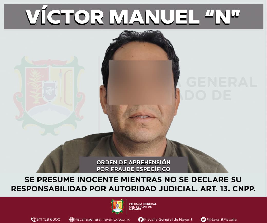 Elementos de la Agencia de Investigación Criminal de Nayarit ejecutaron dos órdenes de aprehensión en la localidad Bucerías, municipio de Bahía de Banderas contra Víctor Manuel “N”, ambas por su presumible participación en hechos que para la ley configuran el delito de fraude específico, siendo la primer orden de aprehensión en agravio de una empresa inmobiliaria, mientras la segunda es en perjuicio de una persona de sexo masculino cuya identidad es reservada para salvaguardar su privacidad e integridad.