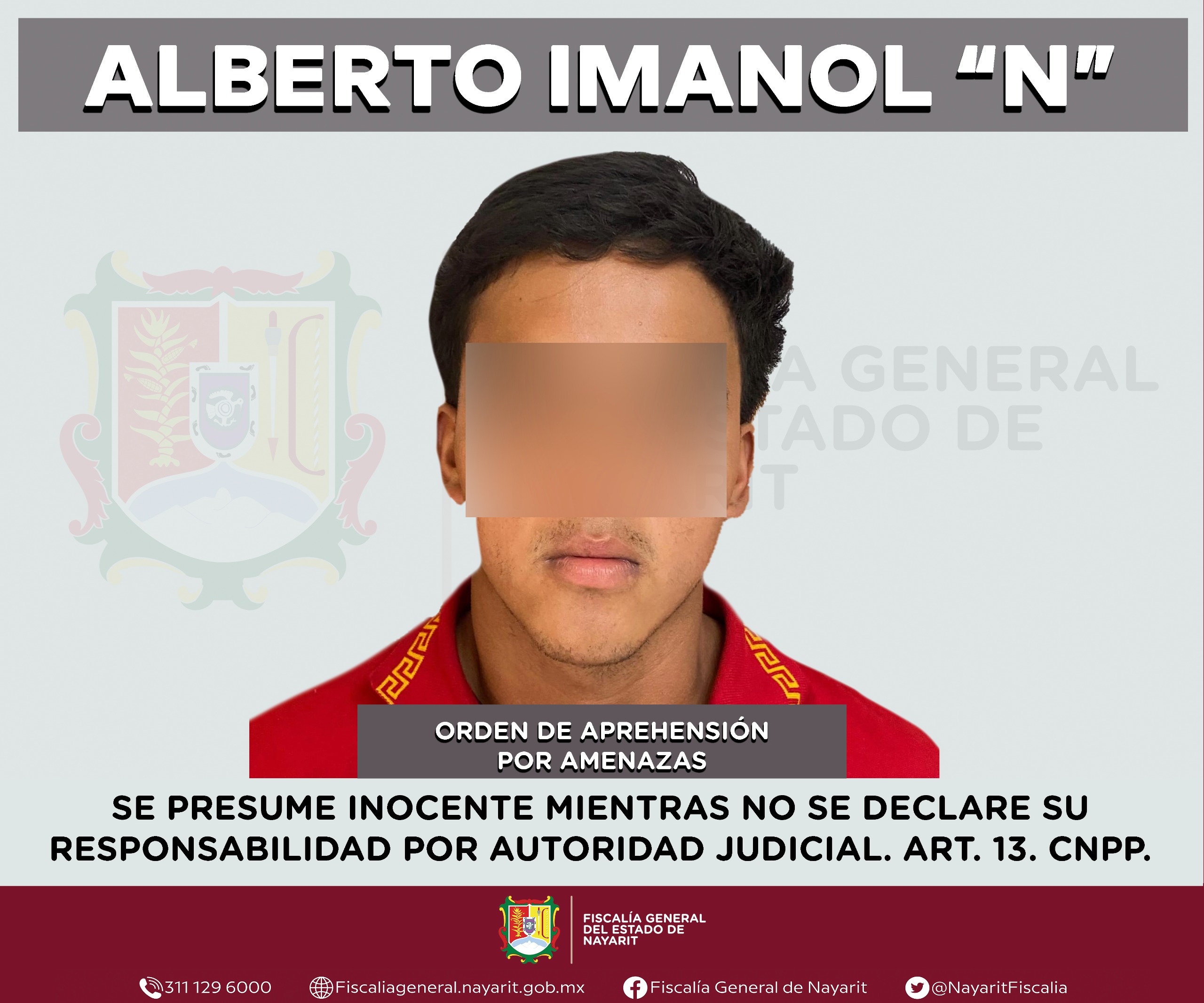 Elementos de la Agencia de Investigación Criminal de Nayarit ejecutaron una orden de aprehensión en la localidad Mora, municipio de Tepic contra Alberto Imanol “N”, por su presumible participación en hechos que para la ley configuran el delito de amenazas, cometido en agravio de una persona cuya identidad se reserva para salvaguardar su privacidad e integridad.