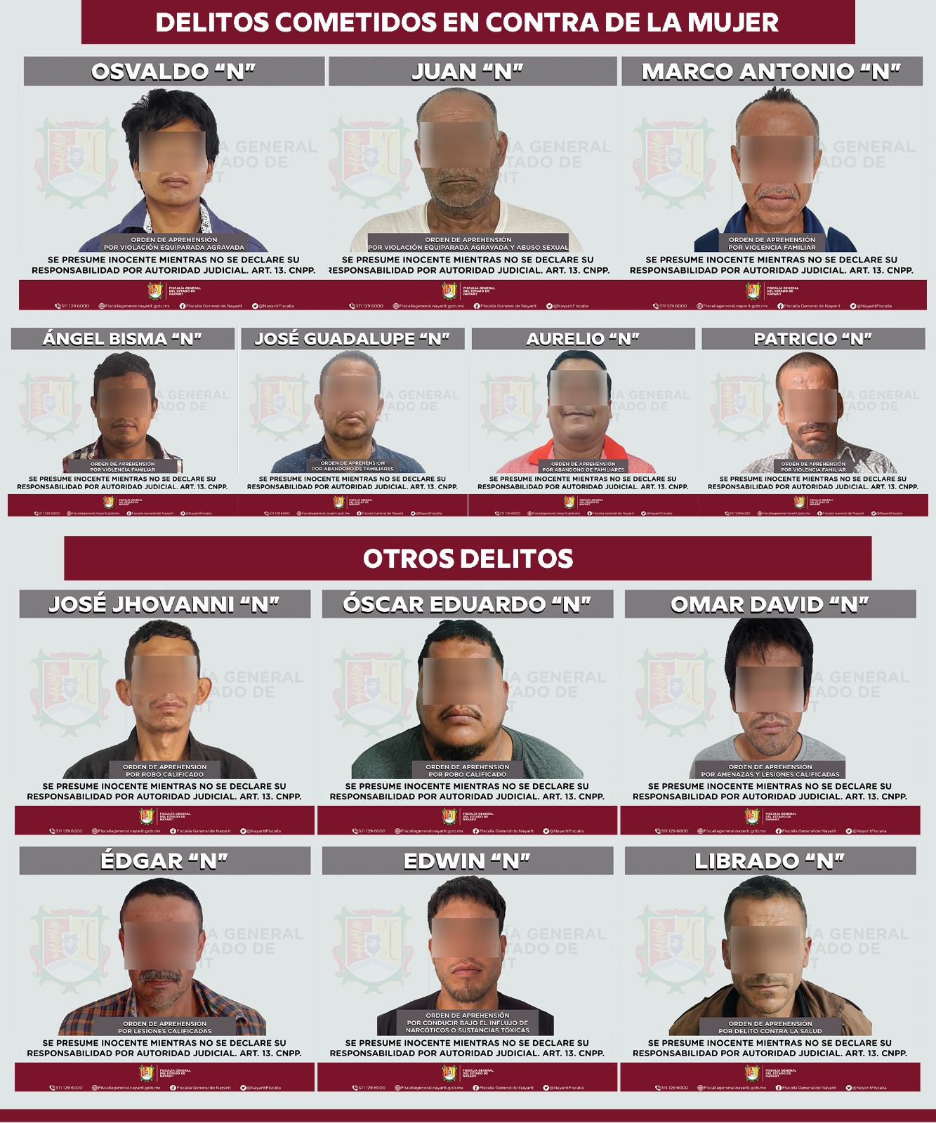 Asimismo, se ejecutaron 7 órdenes adicionales por los siguientes delitos: